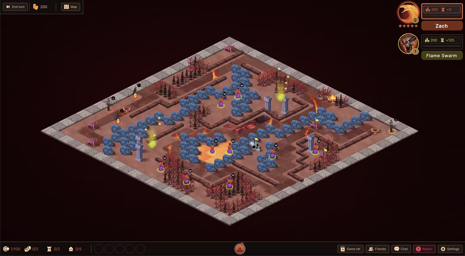 Gain gold each turn by controlling structures like villages, towers, and portals. Use that gold to summon units in tiered order, build your composition, and outmaneuver opponents on a tile-based battlefield.