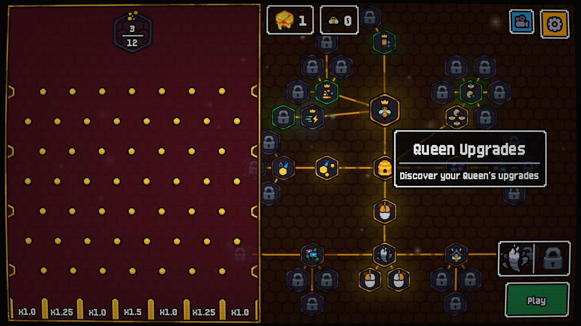 Beencremental is a colorfull incremental game about bees. Played with a mouse only, guide your queen to Collect pollen, drop it into the plinko machine to produce honey, upgrade your beehive and create an unstoppable swarm to conquer the four seasons.