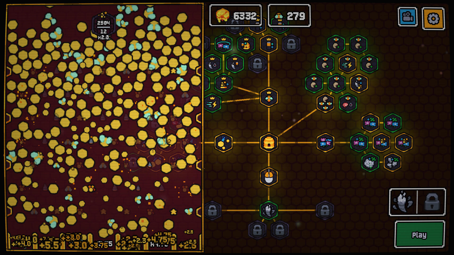 Beencremental is an incremental Game about Bees. Grow an unstoppable swarm and conquer the four seasons, devouring every flower in your path! Drive your queen with your mouse, Gather Pollen, Gamble it into a Plinko machine and grow your hive trough a Tech Tree!