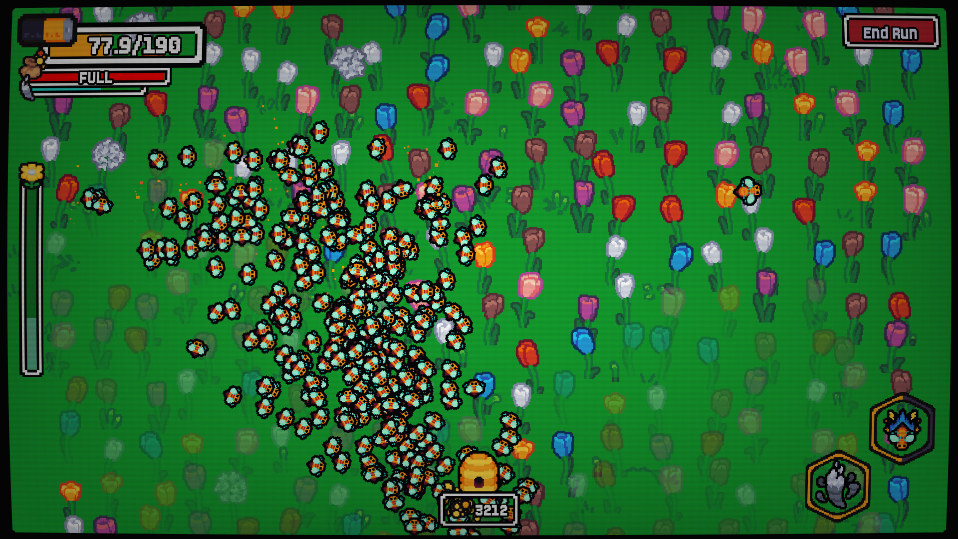 Beencremental is an incremental Game about Bees. Grow an unstoppable swarm and conquer the four seasons, devouring every flower in your path! Drive your queen with your mouse, Gather Pollen, Gamble it into a Plinko machine and grow your hive trough a Tech Tree!
