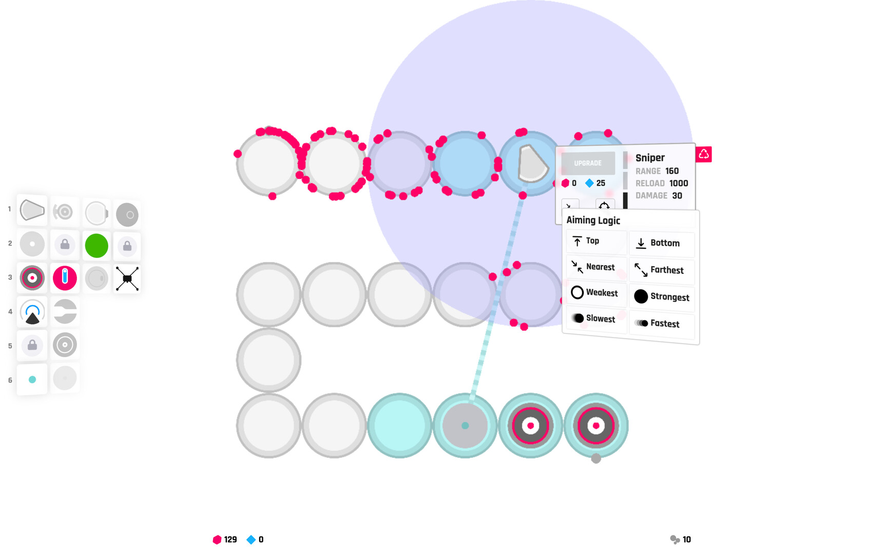 Kircles is a designer-driven tower defense where strategy comes from how you combine your towers. Mix 18 unique turrets to unlock powerful synergies, discover new behaviors, and stop the swarm before it reaches the exit.