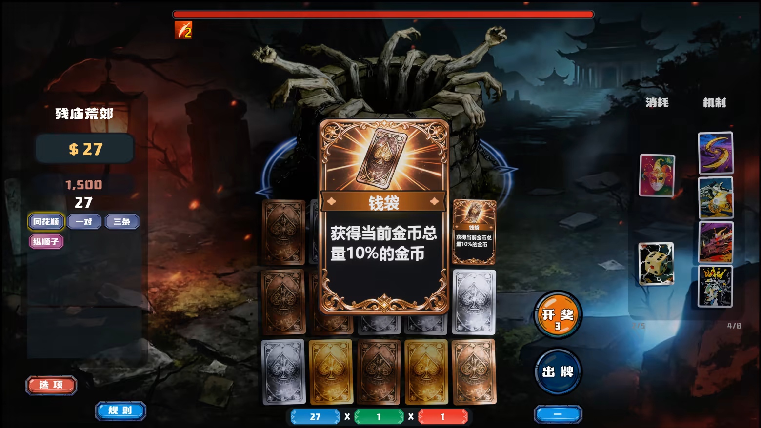 The core gameplay revolves around positioning cards horizontally and vertically to freely arrange poker hands like pairs, three-of-a-kind, and straight flushes. Every move directly impacts follow-up synergies and your overall damage output—the foundation of a successful hunt!