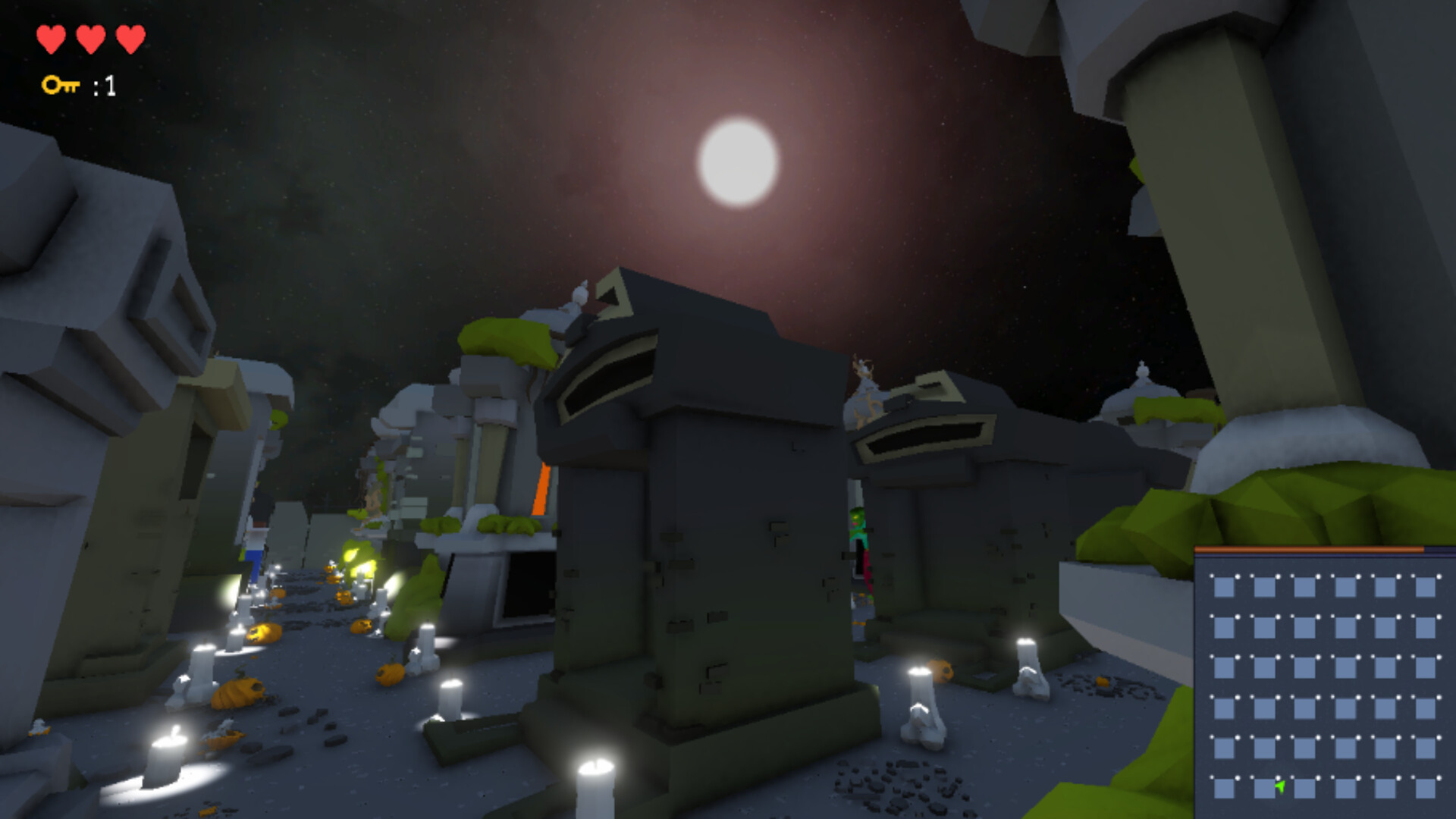 Explore a haunted graveyard, investigate tombs, and avoid hidden dangers.