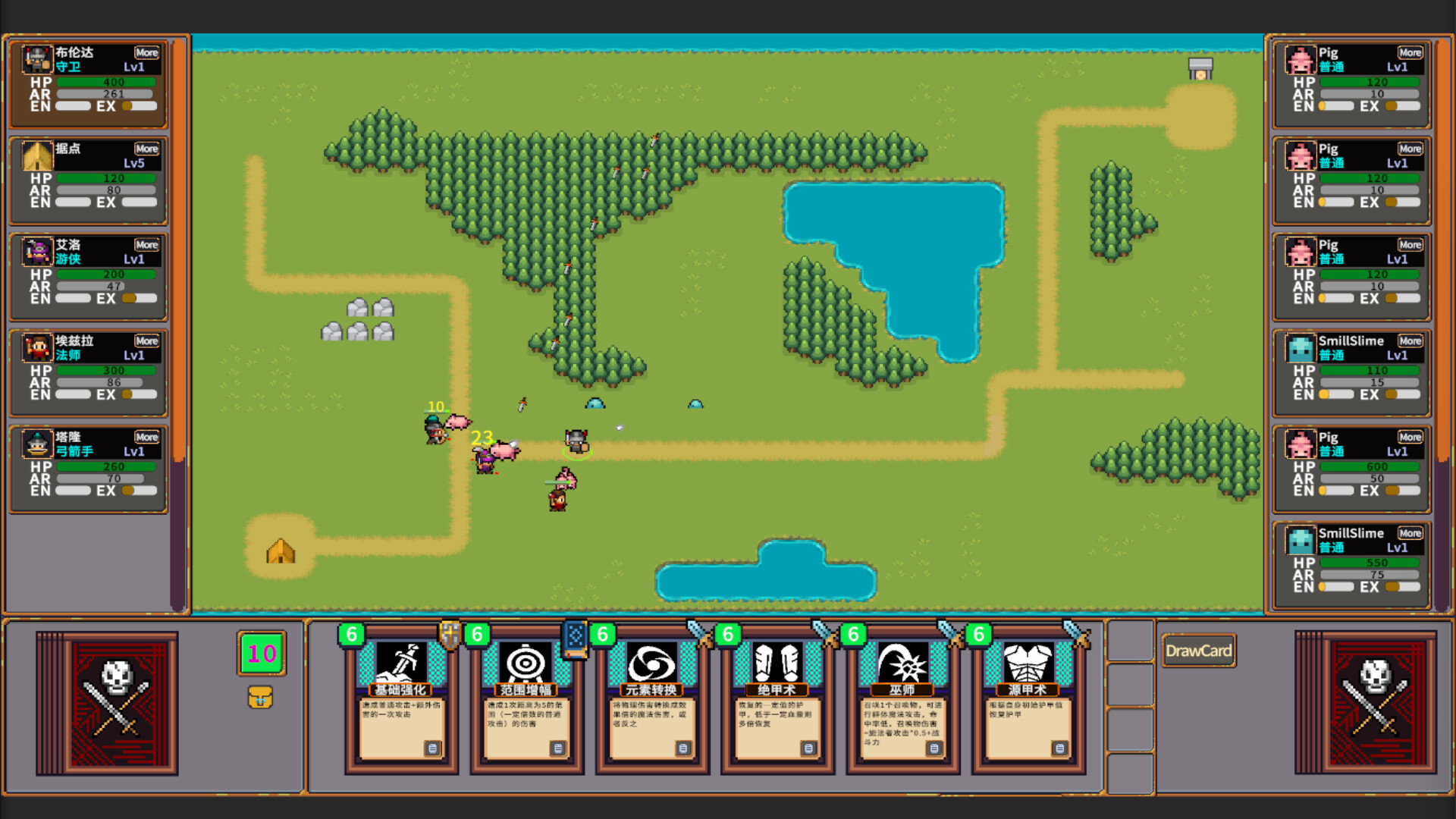 This is a card adventure game where you can choose 4 characters to form a team, select different routes to defeat enemies, and earn gold and experience points. Enemies will attack, and you can level up characters, purchase equipment, upgrade, enhance, and forge your cards to defeat powerful foes.