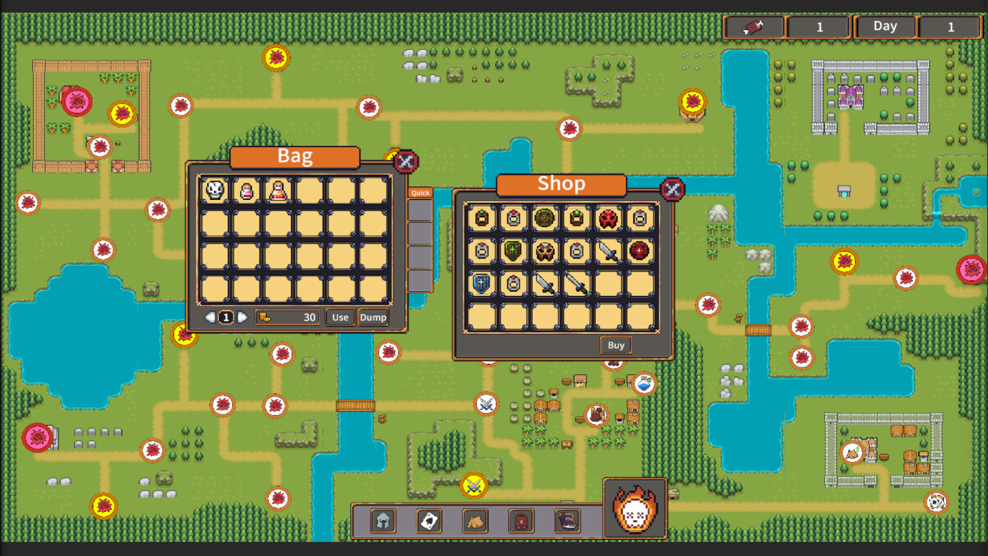 Equipment and Enhancement Potions can be purchased from stores or obtained by defeating enemies. Approximately 50 different pieces of equipment are available.