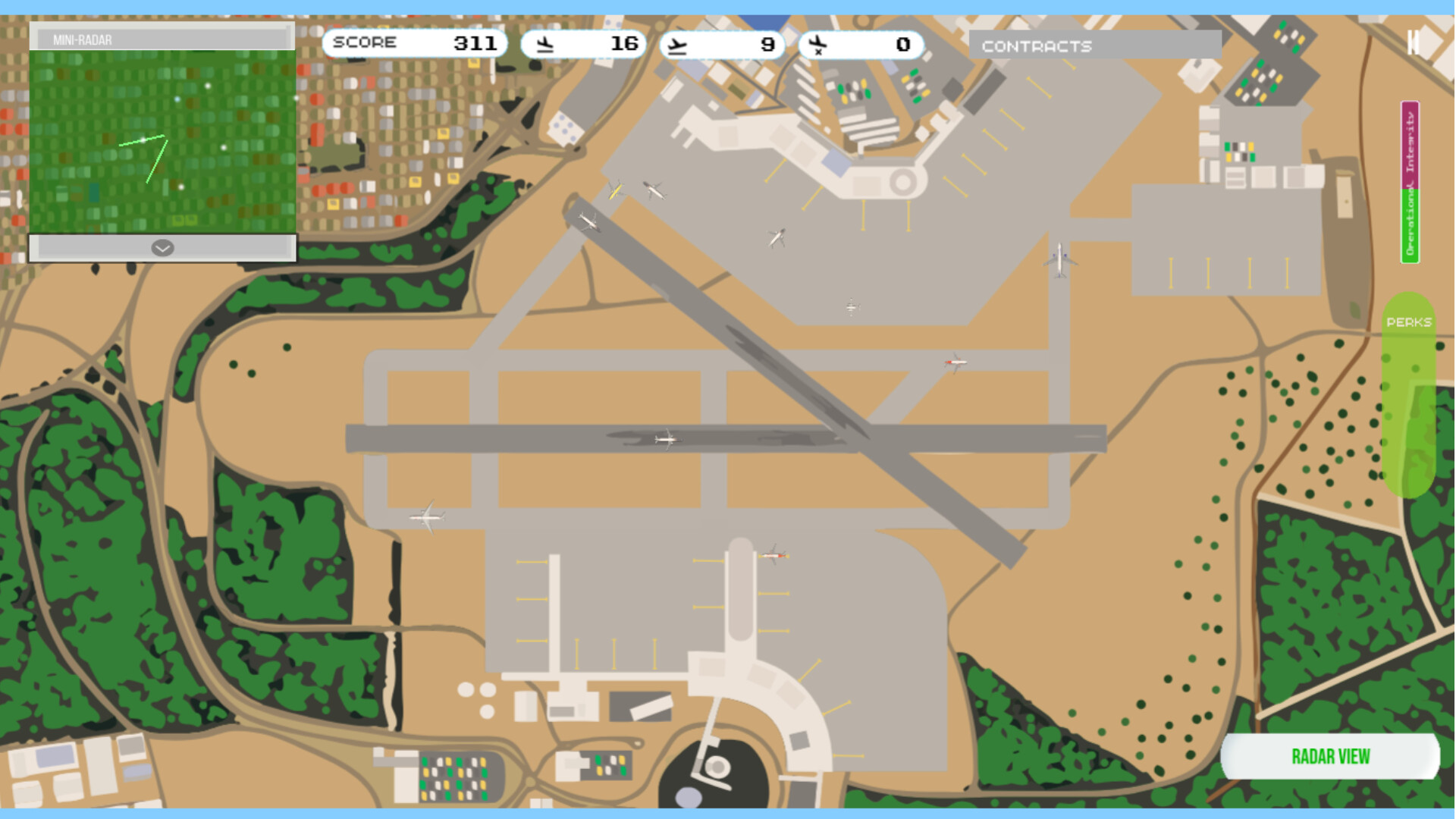 Manage both approach/departure air traffic and ground operations in a simple top-down 2D air traffic control (ATC ) interface designed for clarity and fast decision-making. From guiding incoming aircraft safely to coordinating departures and taxi movements, every choice matters.