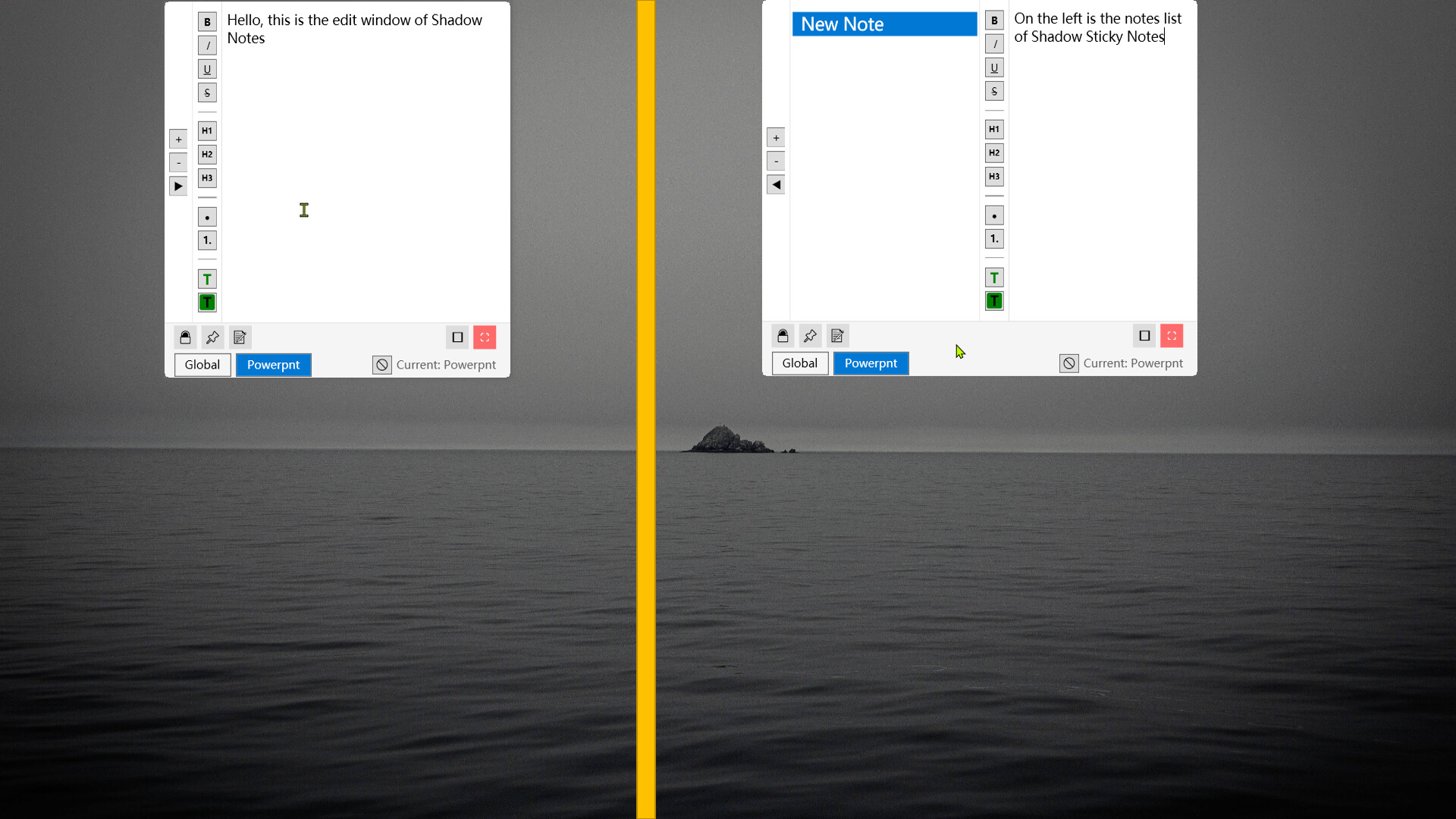 Note Window (all features below support virtual desktops and multiple screens)