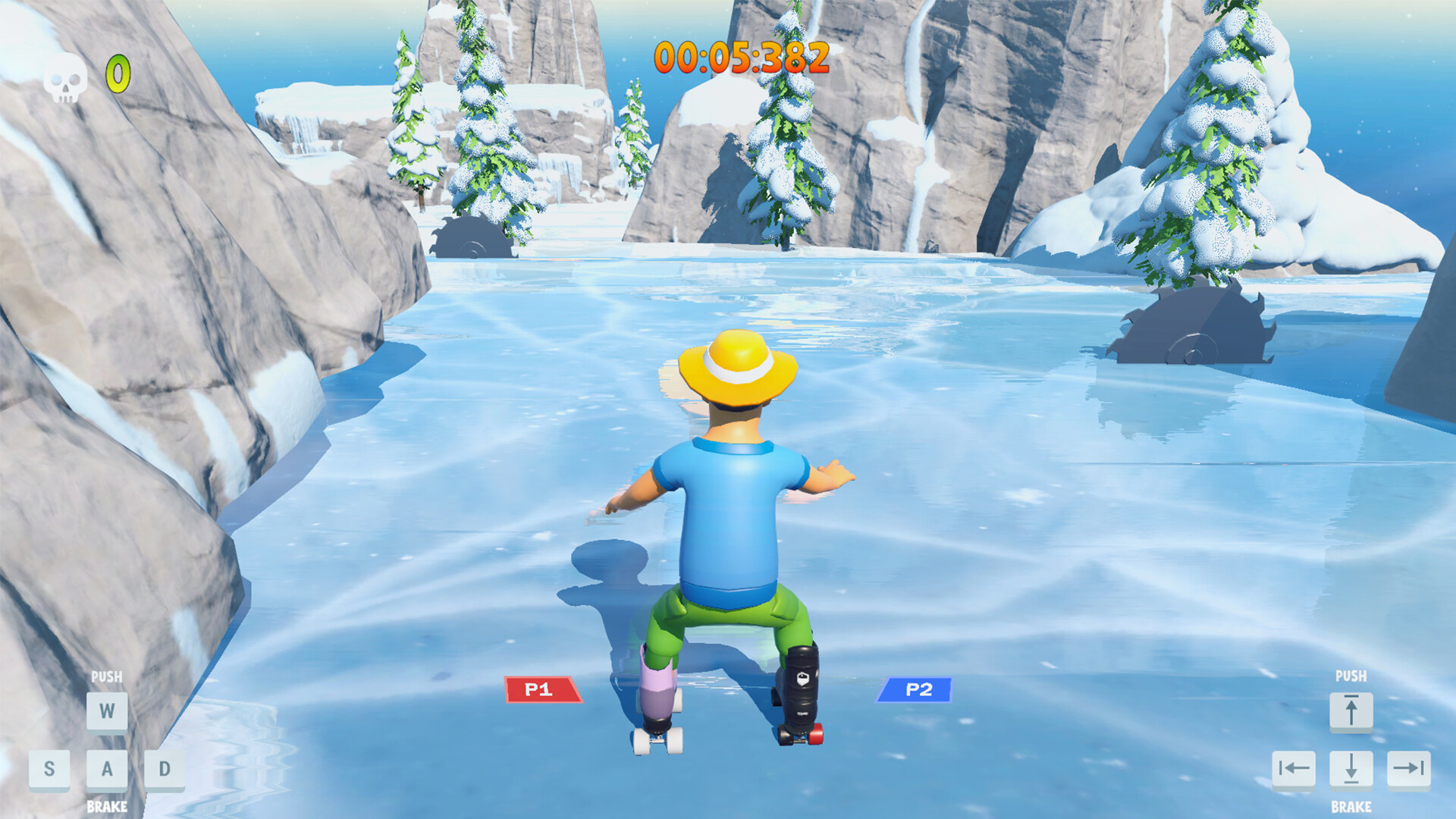 Grab a friend or ride solo down a devastatingly difficult obstacle course. You will get crushed, sliced, fall, trip, and run into the occasional cactus as your teamwork is put to the ultimate test. Each player controls a skate, and through teamwork and persistence, it’s your job to safely guide your protagonists through each biome to safety.