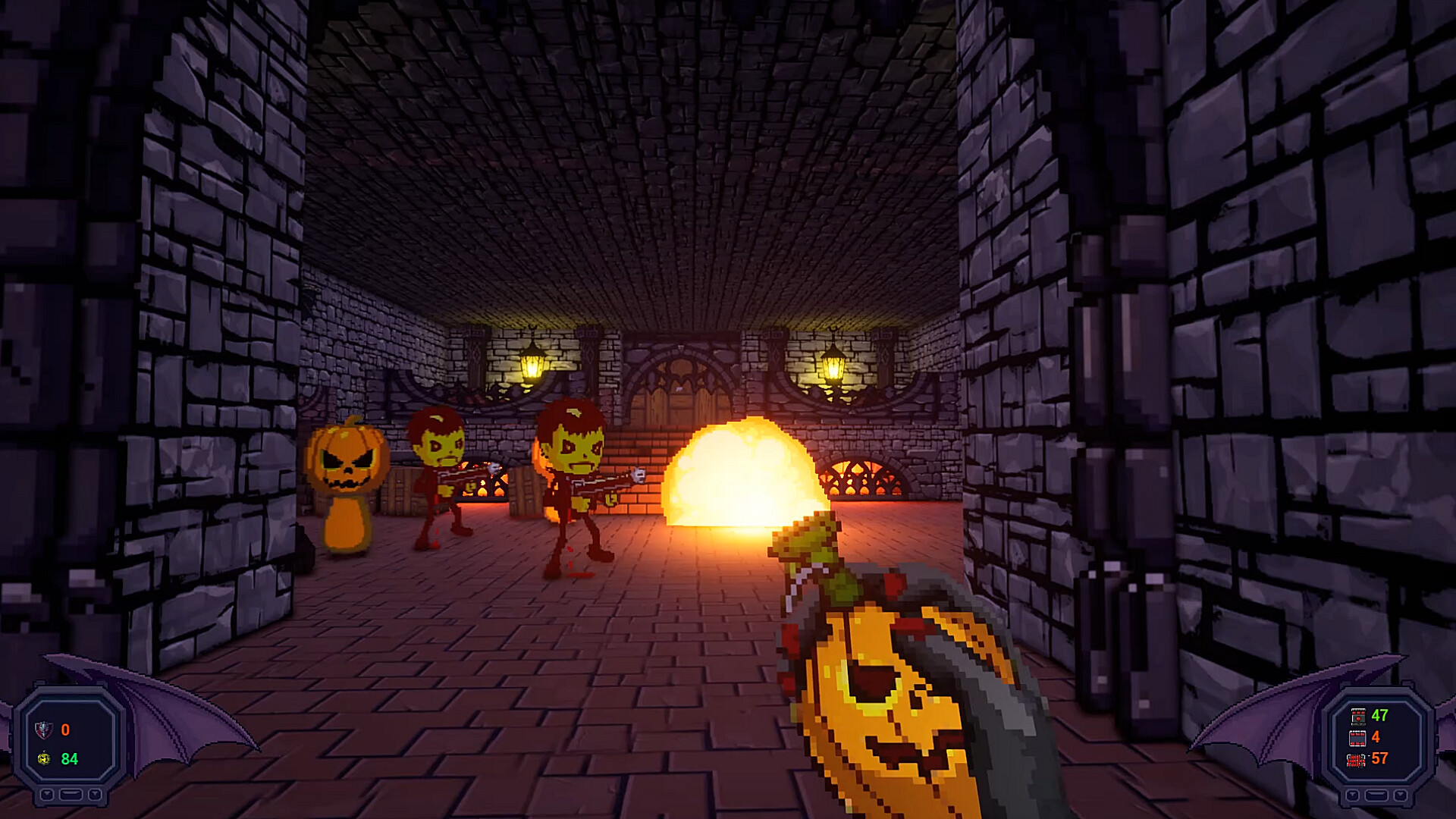 Vampire Pumpkin Plot is a short retro inspired linear first-person shooter action game with fast-paced movement and platforming.