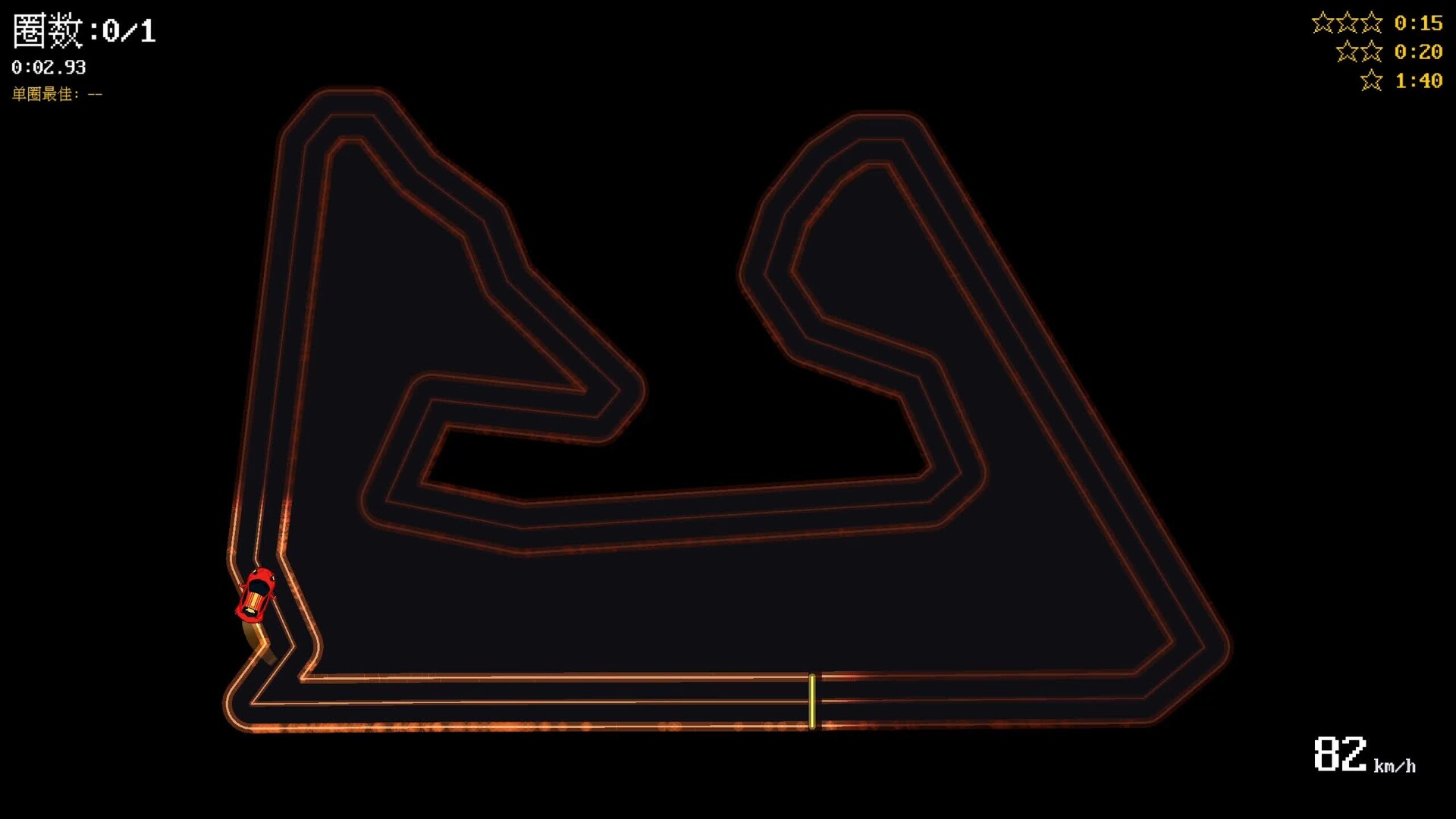 A fast minimalist top-down racer where you push tight lines, skim the edge of the track, and chase faster lap times on fully visible single-screen circuits.