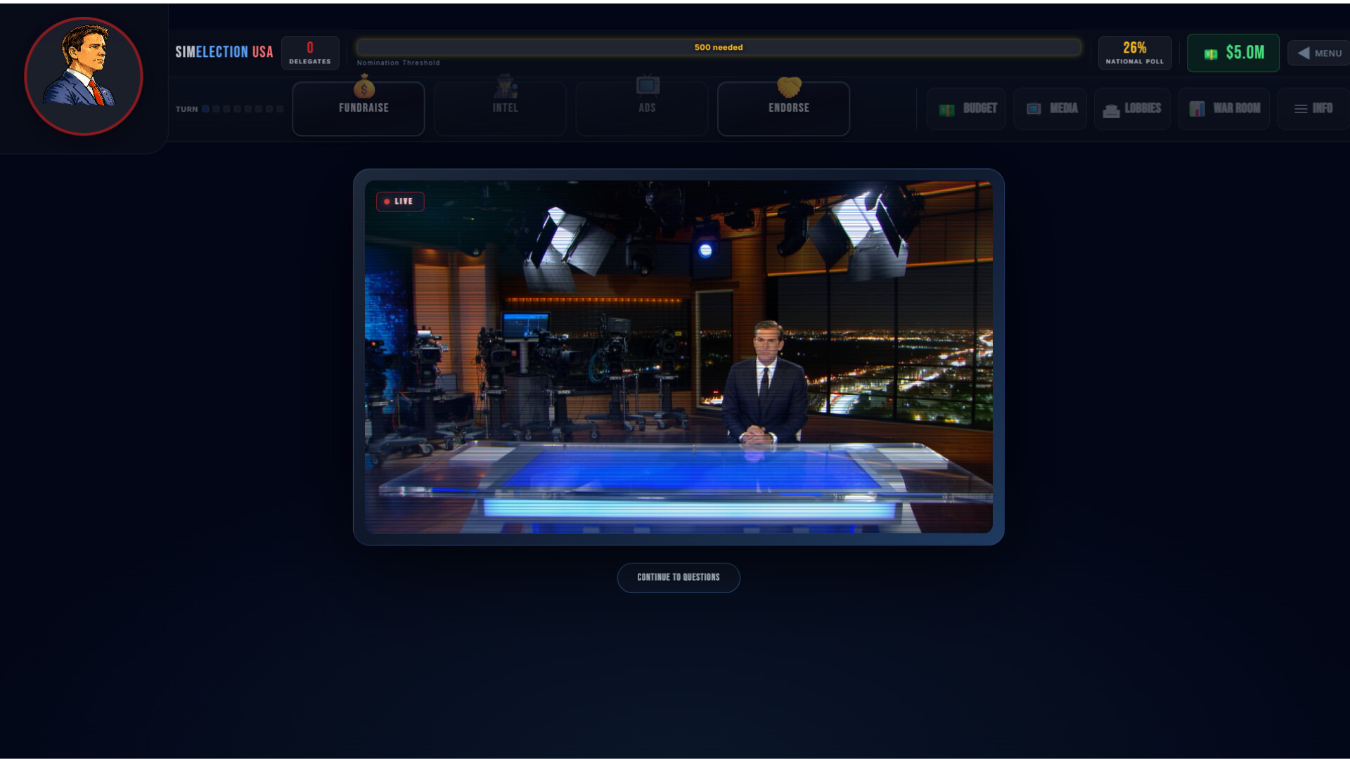 Build your candidate, shape your message, and navigate a system where money, media, influence, and timing decide everything.