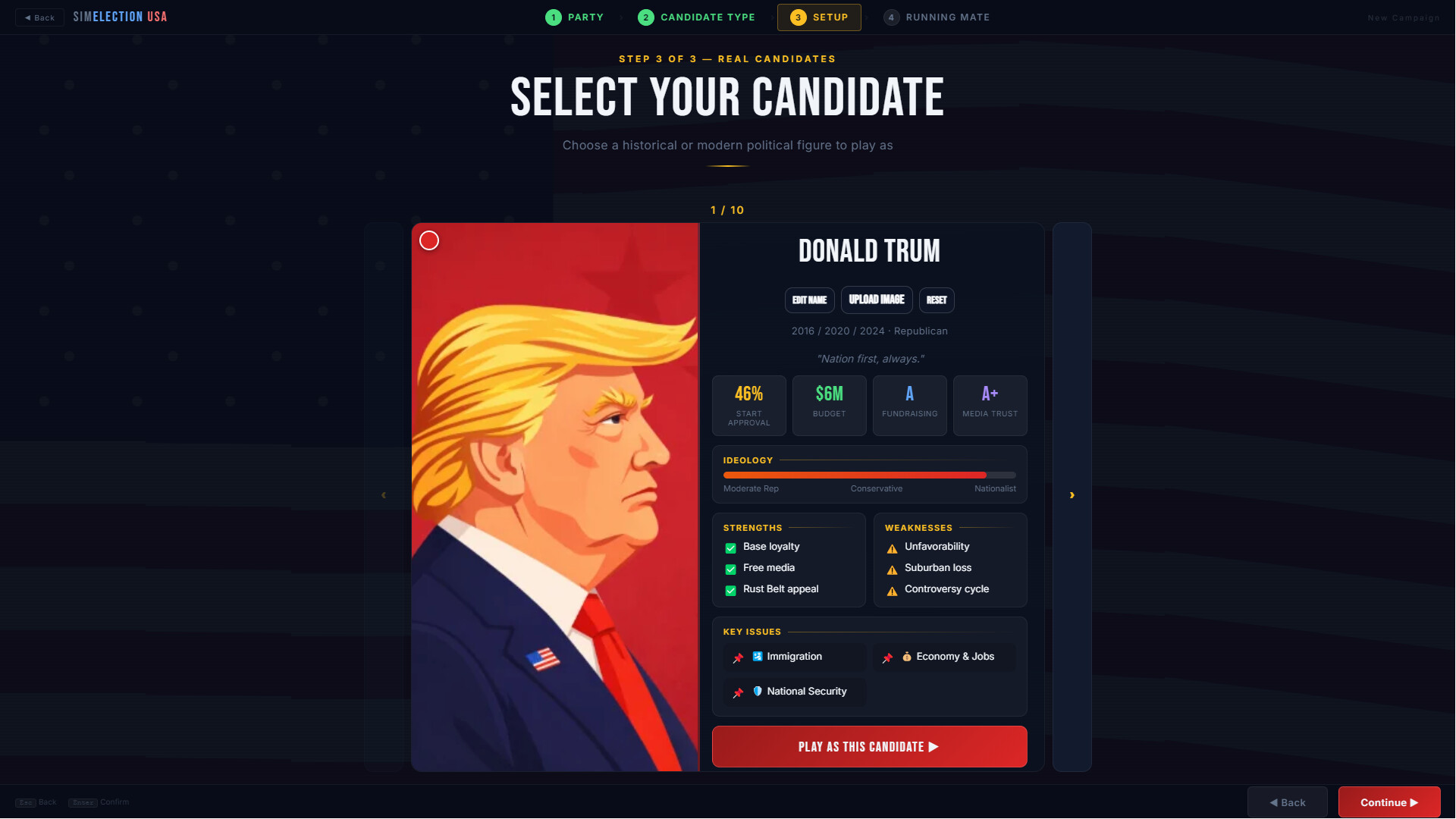 创建你的候选人,塑造竞选信息,在一个由资金、媒体、影响力与时机共同决定胜负的系统中运筹帷幄。