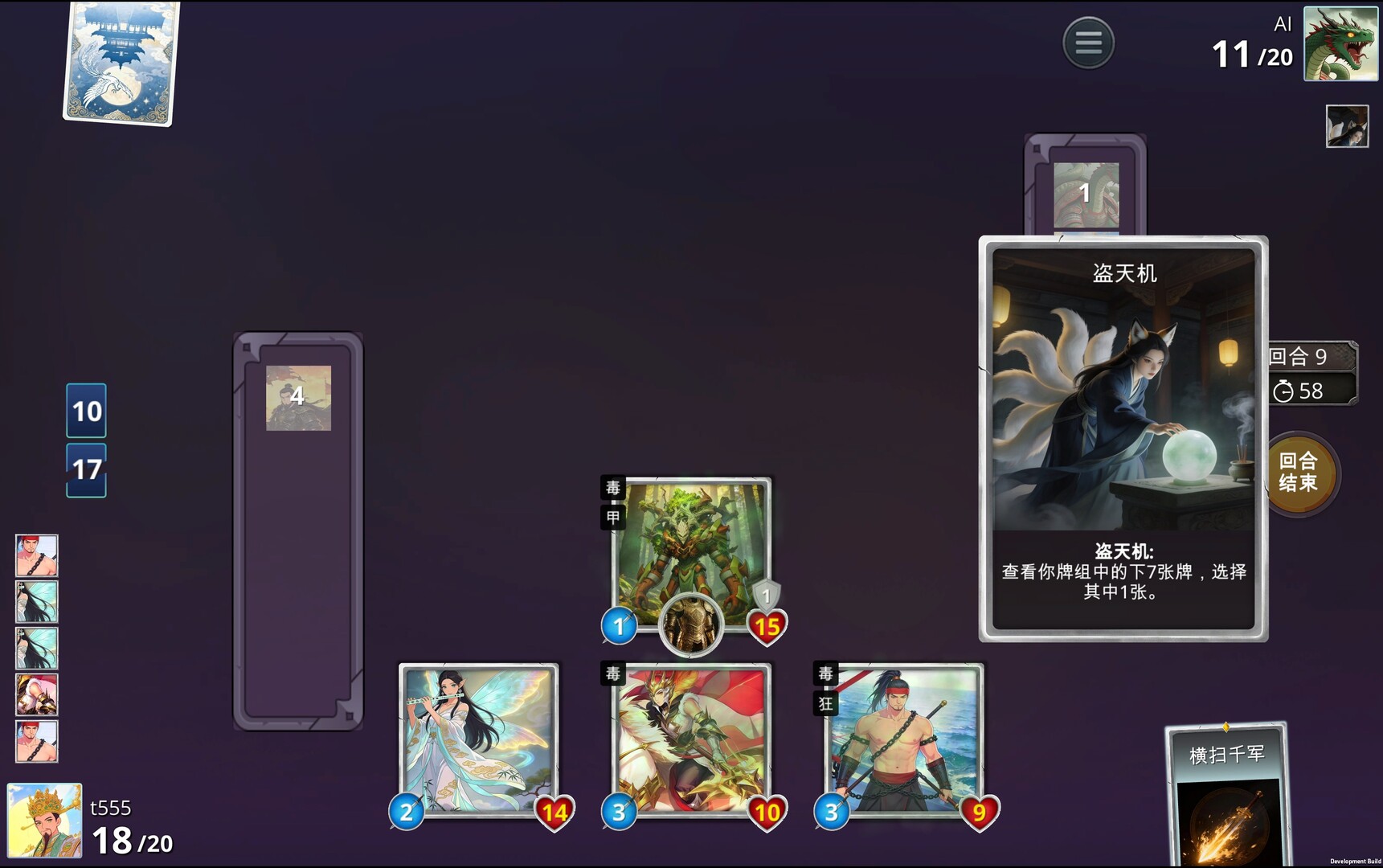 进入对战后,核心玩法围绕 “抽牌 + 决策” 展开,随机性与策略性拉满。每回合你都能抽取一张牌,没有固定的抽牌规律,你无法预知下一张抽到的是强力输出技能、应急防御卡牌,还是增益己方的辅助卡牌。