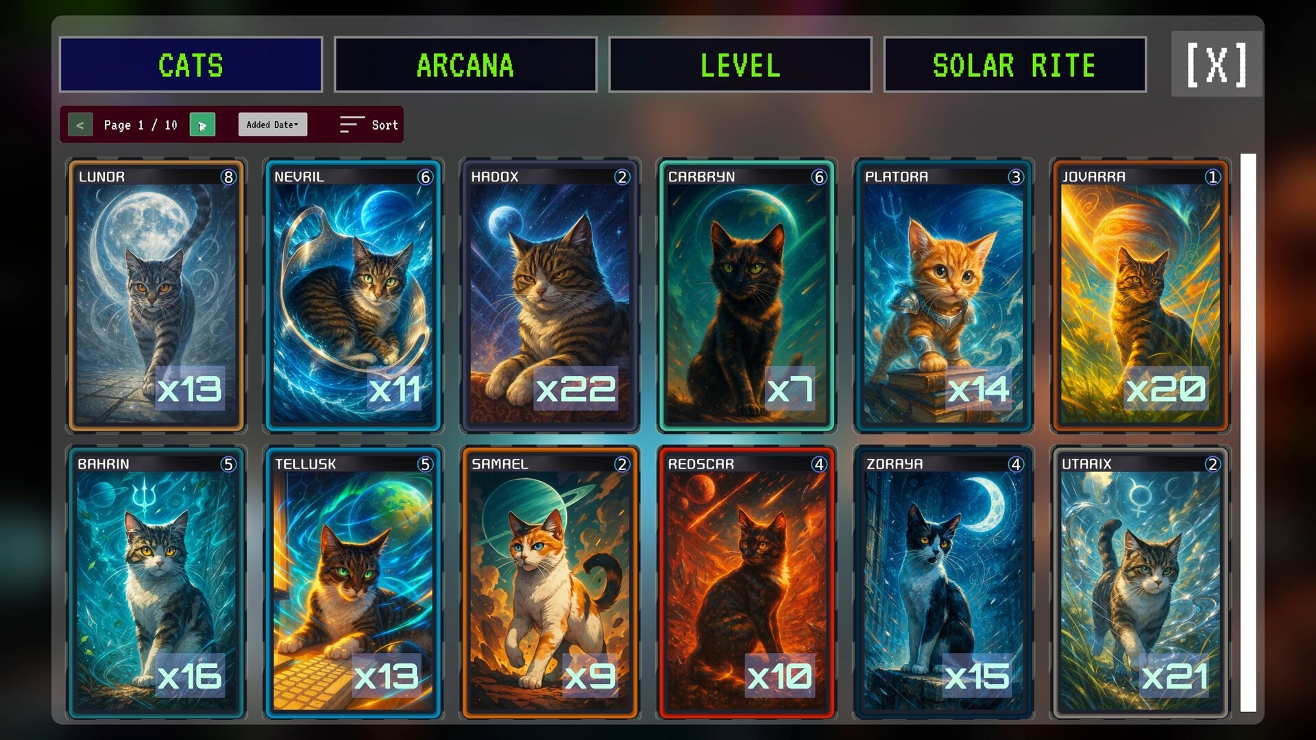 Beneath the arcade action sits an asynchronous conquest layer spread across thousands of conquerable cells on eleven planets. Deploy your collected cat cards to attack, defend, and hold territory. Other players can challenge your claims with their own collections, turning each world into an ongoing territorial struggle.