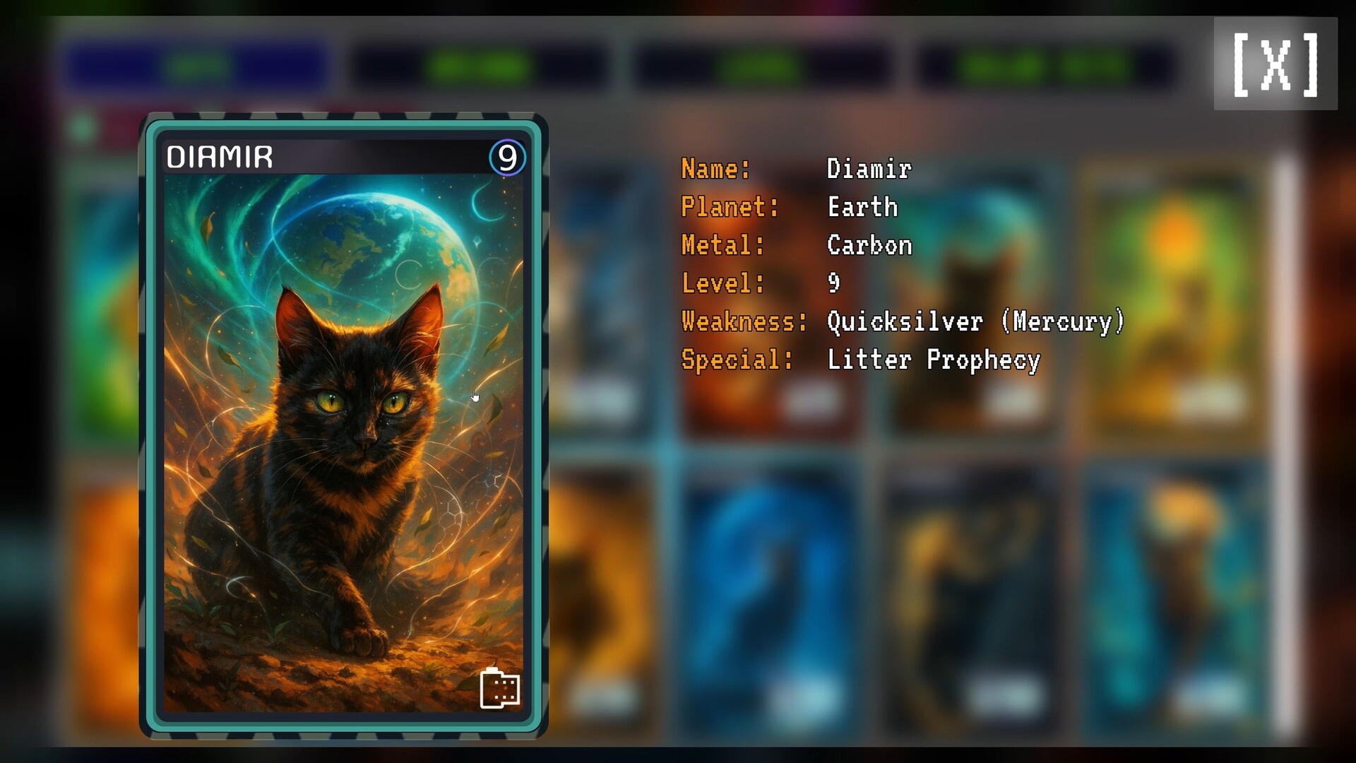 I’m a solo developer and I use my own cat photography in the game. Some of those photos were transformed into in-game card art with generative AI. Both my original photography and the card art based on it are included in the game. Voice lines in the intro cinematic were also generated with AI. Generative AI is also used when generating stylized weapon & power-up cards. Final assets were selected and edited by the developer.