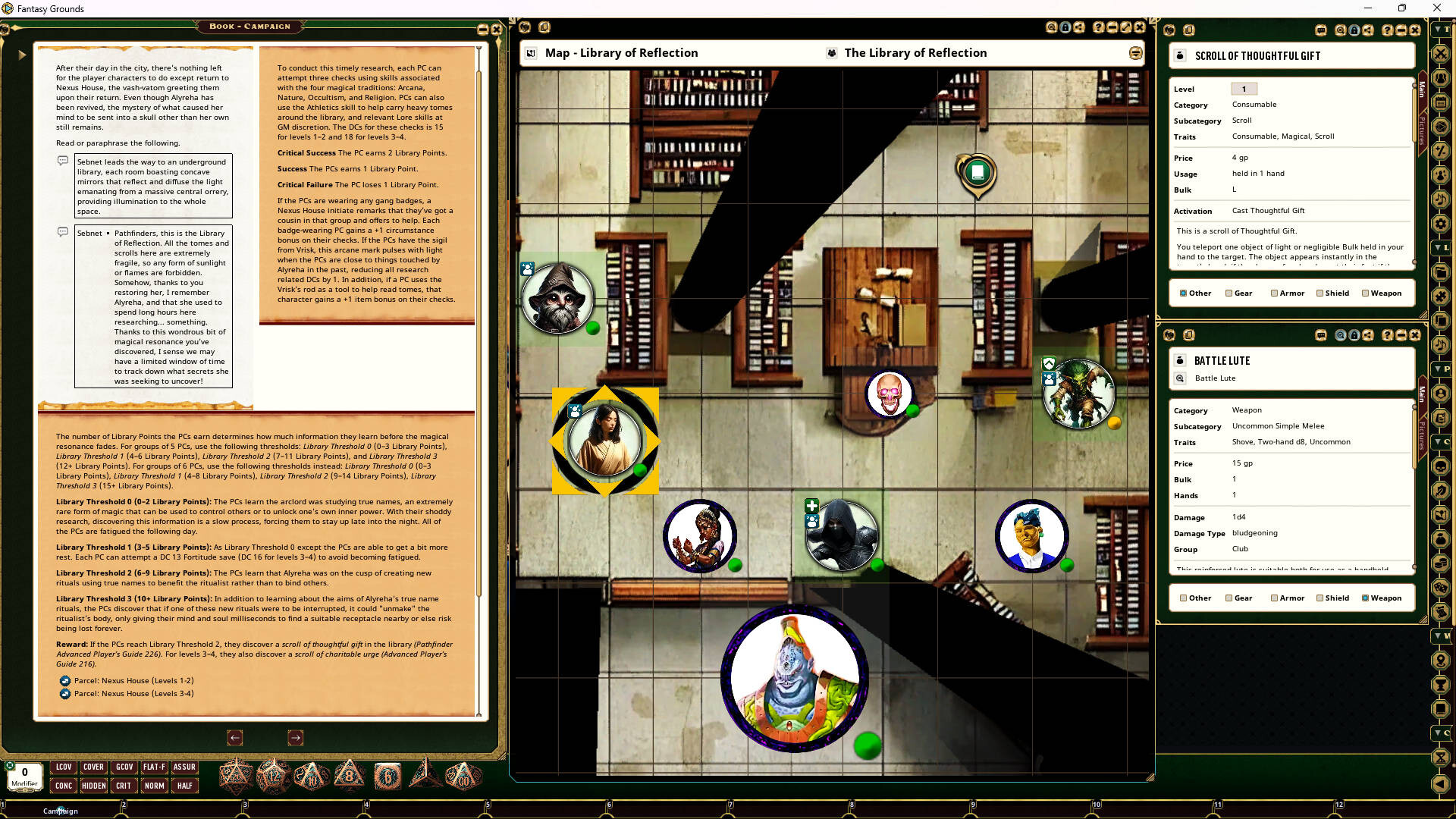 Requires: The free Fantasy Grounds virtual tabletop (VTT) software and the included Pathfinder 2.0 ruleset.