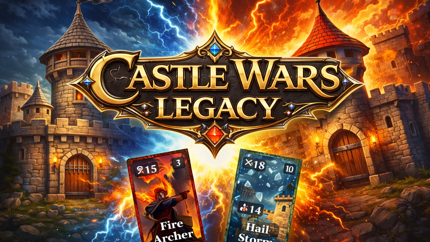 A fast-paced card strategy game with deck building, PvP, tournaments, and a campaign, inspired by the classic Castle Wars flash game