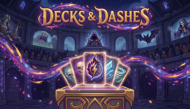 Decks & Dashes is a fast-paced action-deckbuilder where strategic spellcasting meets lightning-fast reflexes. Step into the grand arena as an ambitious mage and battle your way to the top by drafting powerful elemental cards and outmaneuvering your opponents.