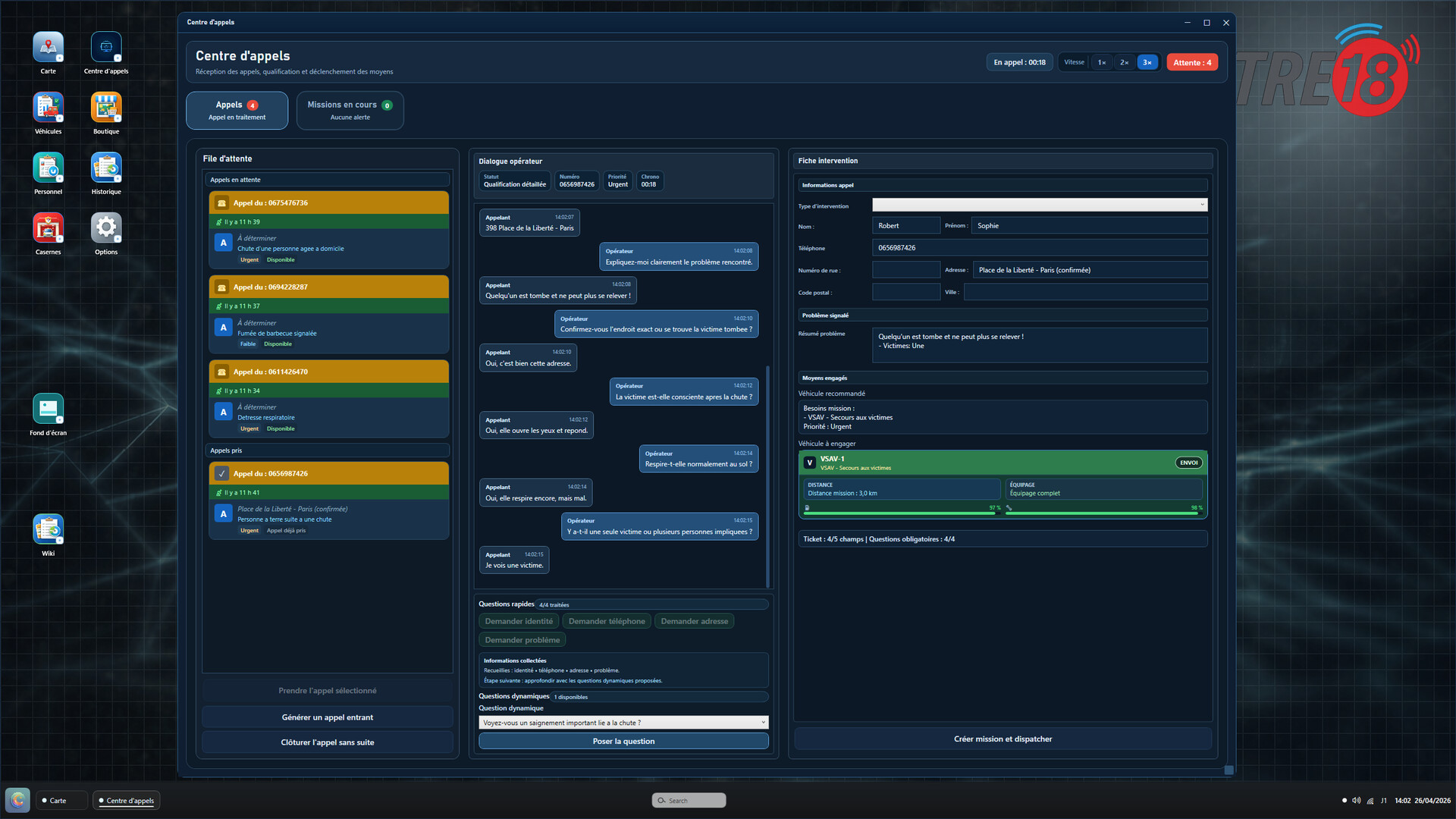 Join Centre 18 now, follow its development, and take command of a modern, strategic, and fully customizable emergency service.