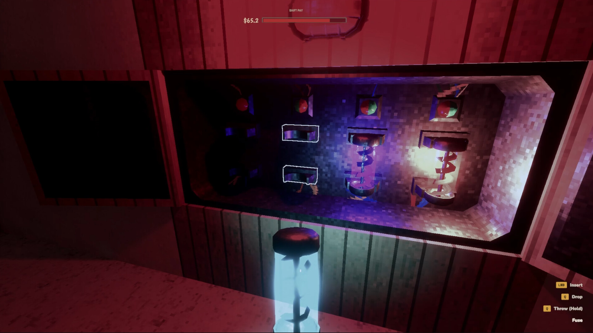 Co-op horror game about running a night shift in a strange building where reality keeps breaking down. Players monitor cameras, report anomalies, fix breakdowns, shoot intruders on sight.