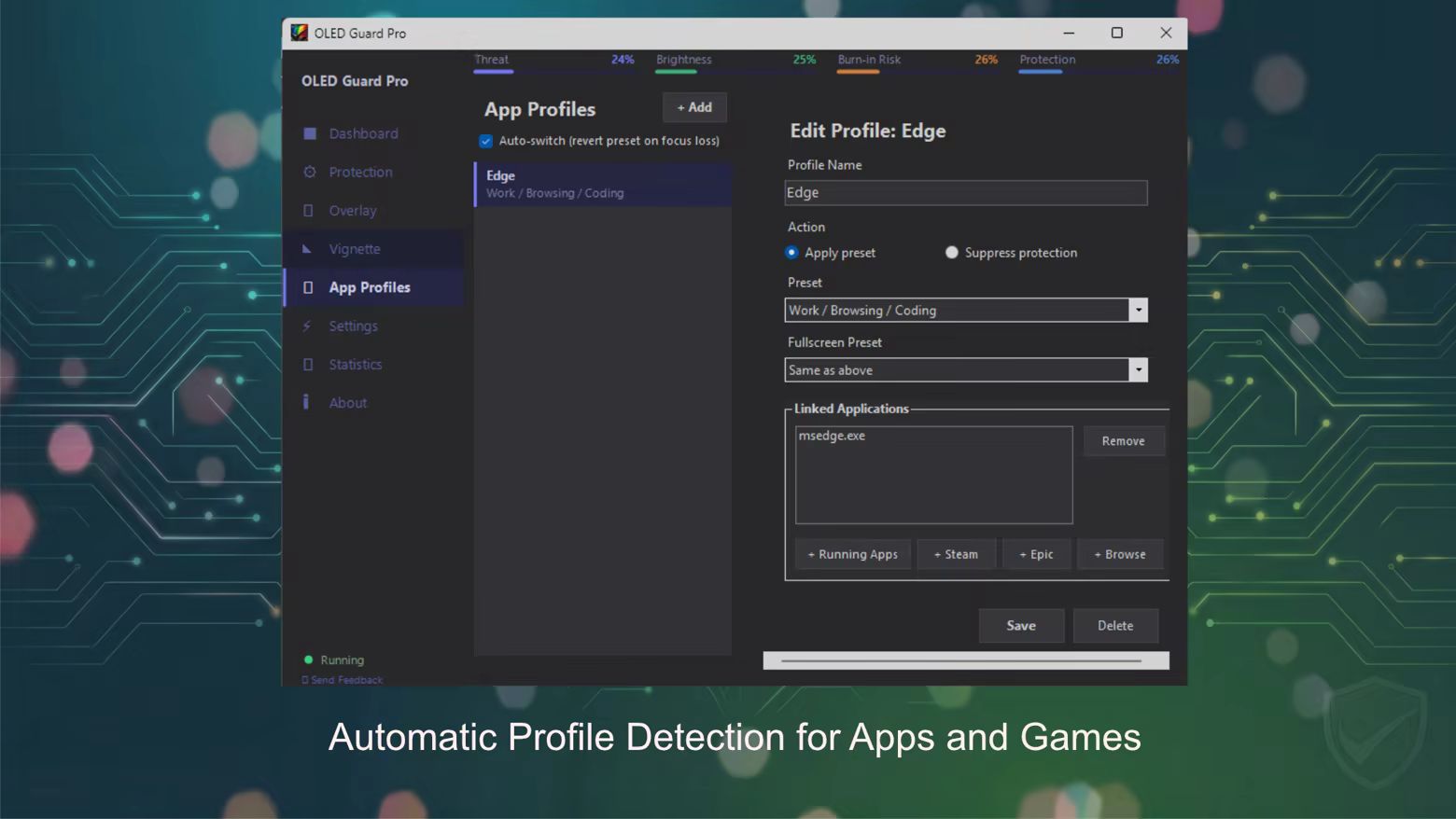 OLED Guard Pro continues protecting your screen even during borderless fullscreen games, making it ideal for modern PC gaming setups.