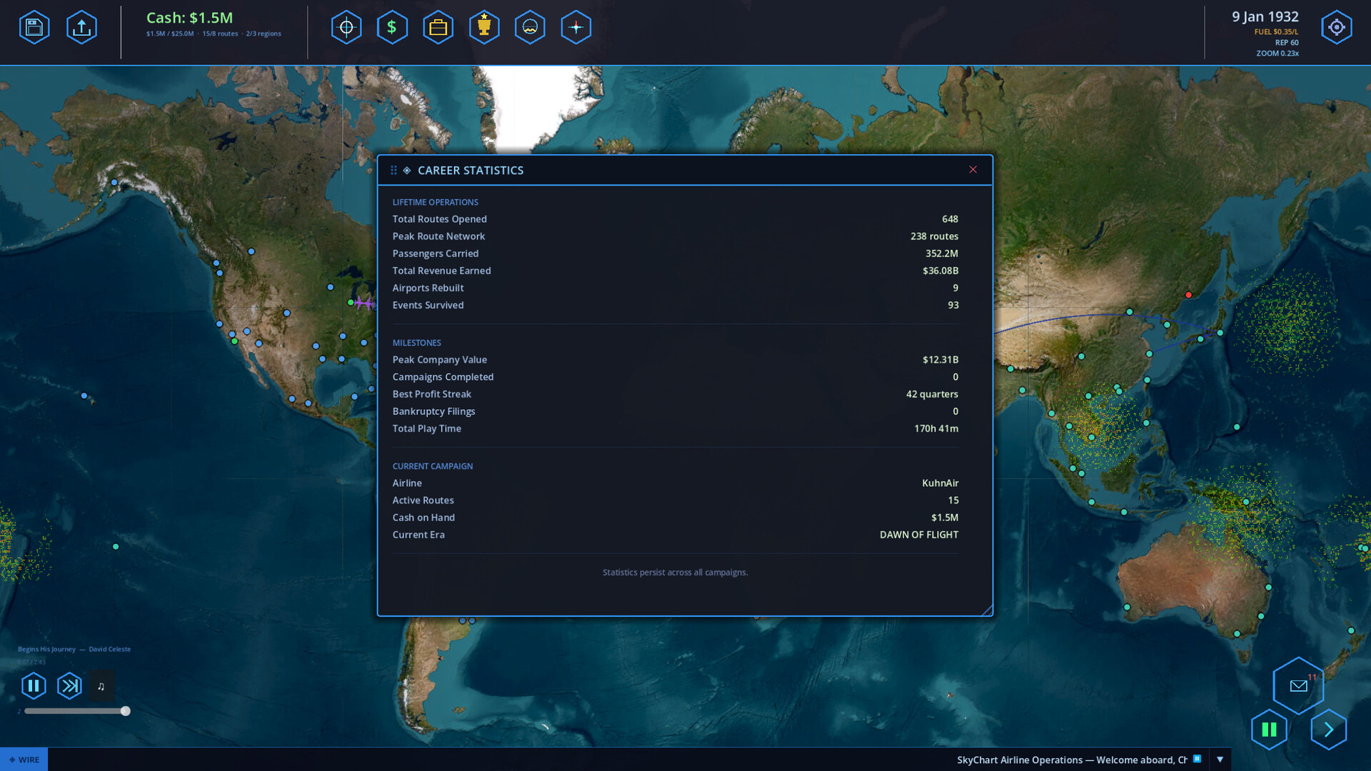“SkyChart is a big game with big ambitions. The core gameplay loop — building routes, managing fleets, competing with rivals, and navigating 90 years of history — is fully playable and deeply satisfying right now. But airline management sims live and die by their details, and the best details come from players who care about getting them right. Early Access lets us build the game we want with the community that wants to play it.”