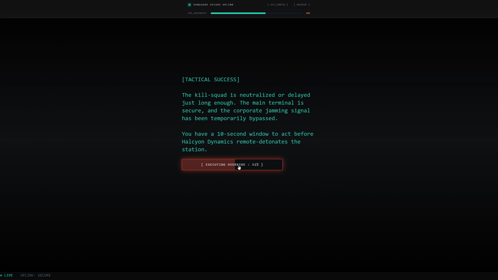 You are a remote operative who just established an unauthorized neural link with a deep space facility that is actively tearing itself apart. Life support is plummeting, the blast doors are sealing, and Halcyon Dynamics Corporate would like to remind everyone that screaming over the open comms is highly unprofessional.
