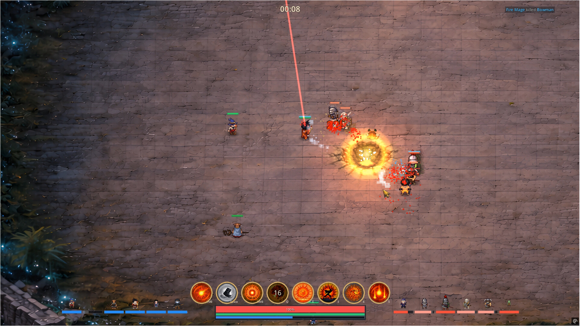 Control one fighter in fast-paced arena battles. Aim abilities, move, and react in real time to outplay your opponents through positioning and timing. Or step back, set tactics, and watch your team fight.