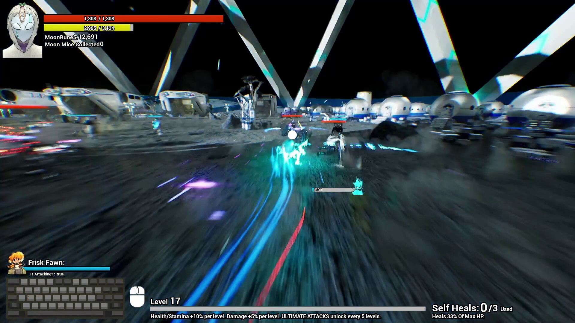 Moon Mice: The Game, is a solo-developed action game that blends souls-like with hack-and-slash combat, parkour-style traversal, and companion-based gameplay within a sci-fi world where humanity survives in floating cities powered by mysterious lunar creatures.