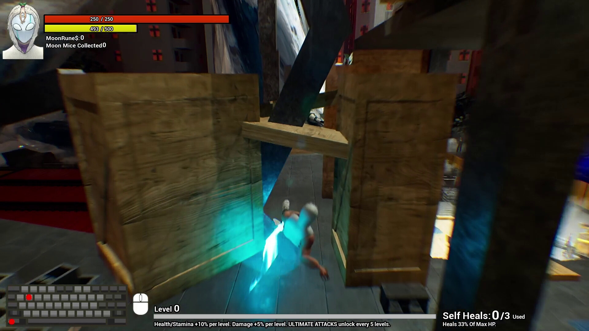 Moon Mice: The Game, is a solo-developed action game that blends souls-like with hack-and-slash combat, parkour-style traversal, and companion-based gameplay within a sci-fi world where humanity survives in floating cities powered by mysterious lunar creatures.