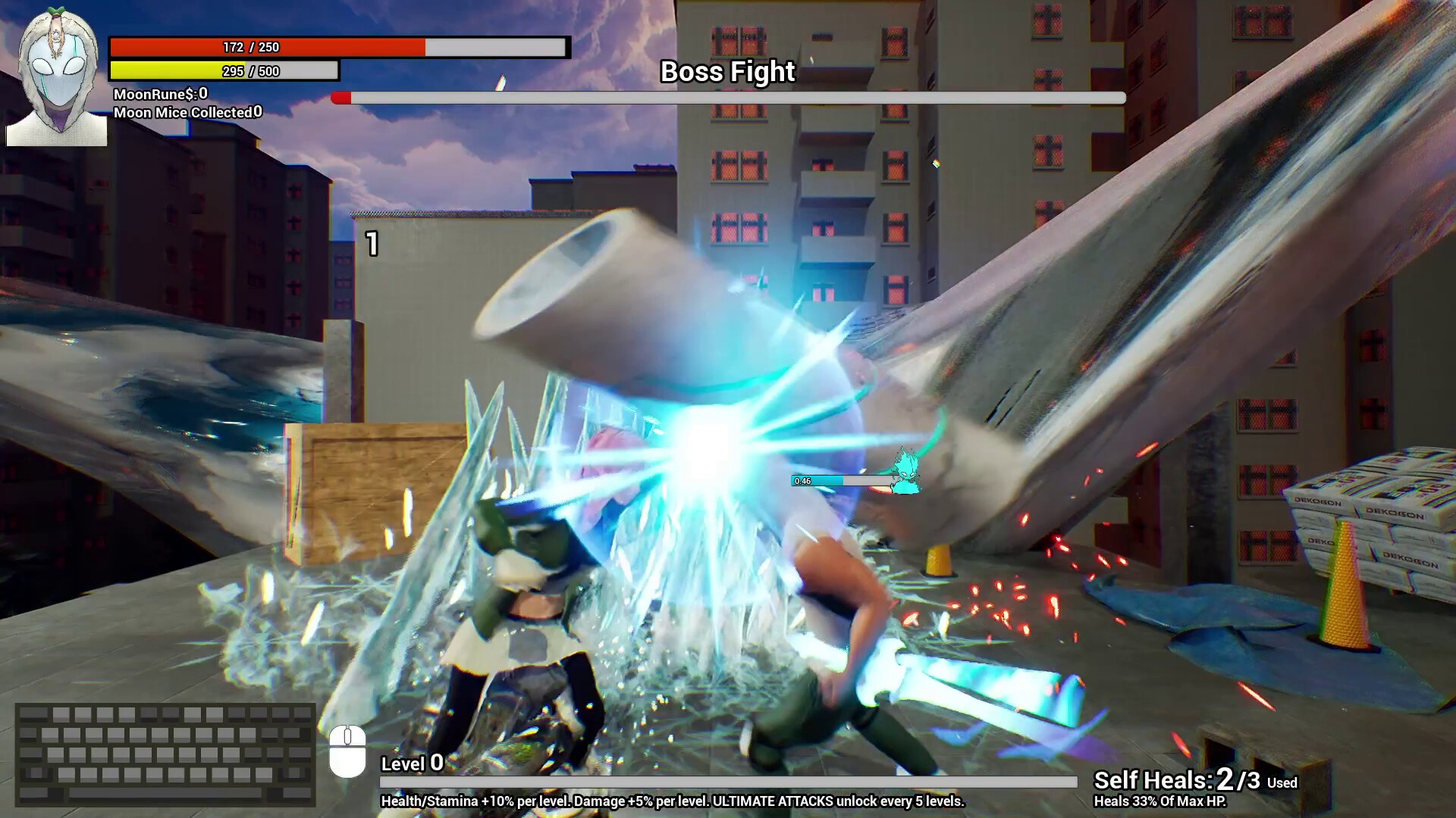 Moon Mice: The Game, is a solo-developed action game that blends souls-like with hack-and-slash combat, parkour-style traversal, and companion-based gameplay within a sci-fi world where humanity survives in floating cities powered by mysterious lunar creatures.