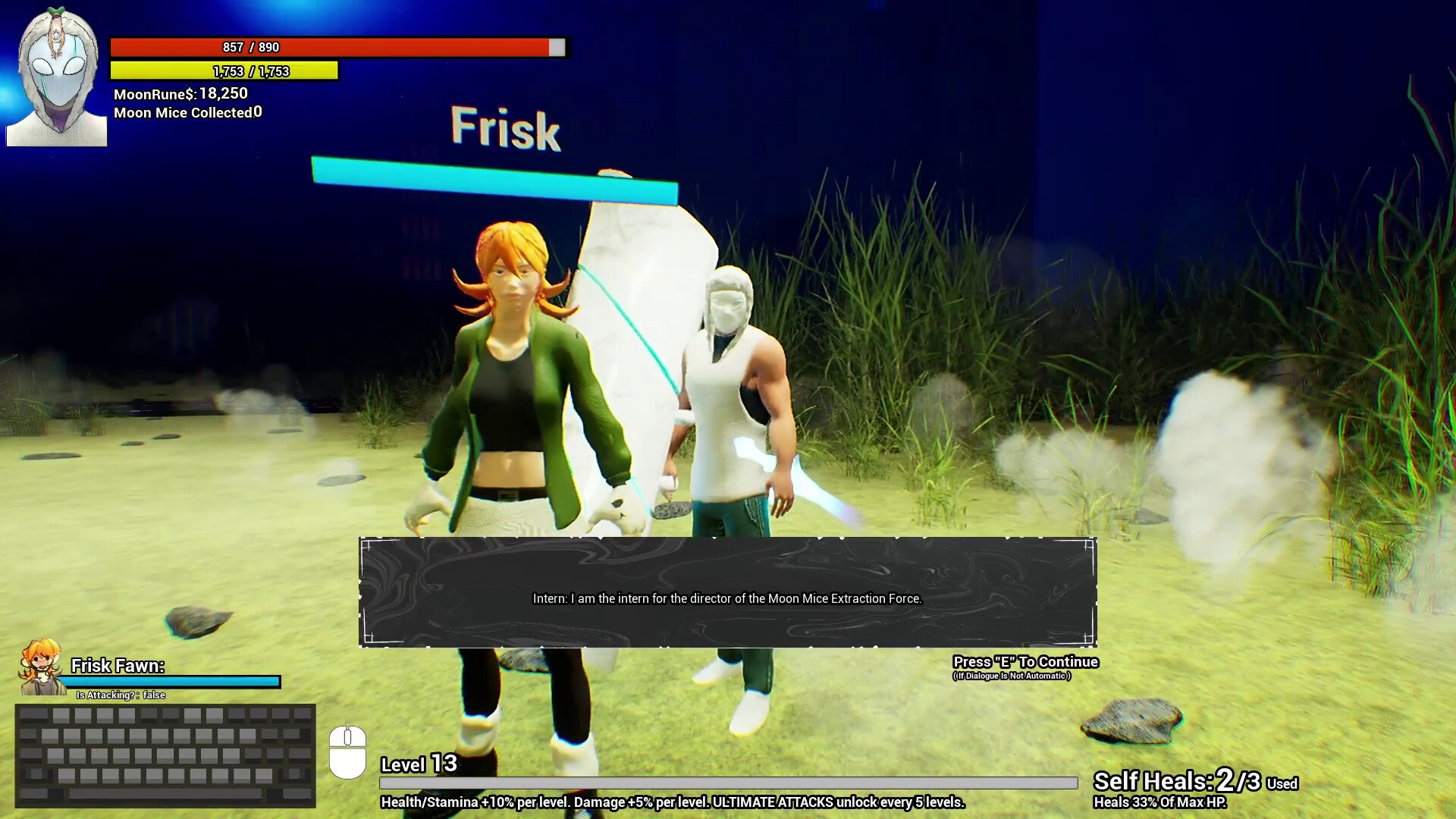 Moon Mice: The Game, is a solo-developed action game that blends souls-like with hack-and-slash combat, parkour-style traversal, and companion-based gameplay within a sci-fi world where humanity survives in floating cities powered by mysterious lunar creatures.