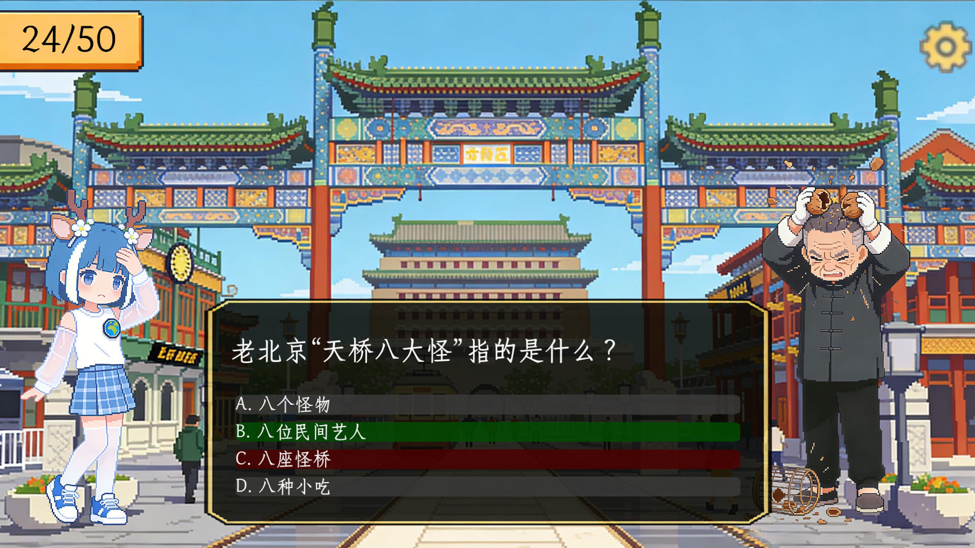 Learn about local customs and culture by answering questions with NPCs. Each city includes 20 different scenes with a total of 1,000 questions. The game is light and fun, suitable for all ages. Players can earn an achievement by answering more than half of the questions correctly in each round.