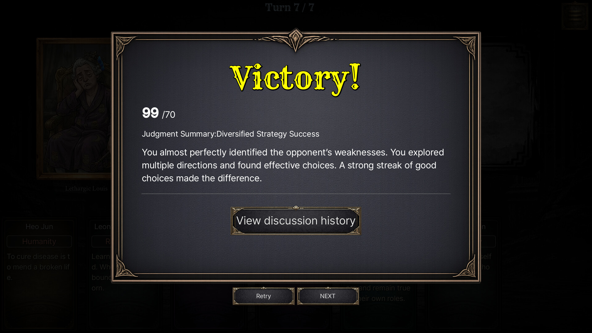 A 7-turn logic duel. Analyze and refute villains’ arguments using draft-based card strategy.