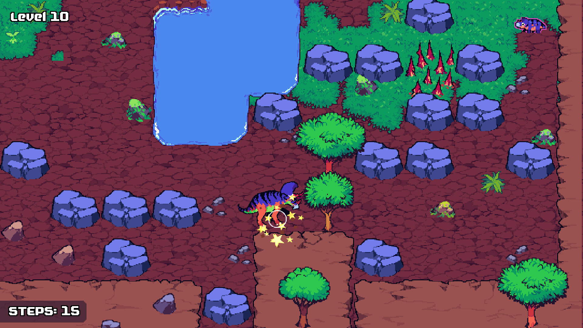 Help the Dad Triceratops to rescue his lost children and defeat the evil raptors by headbutting everything on his way in this jurassic sokoban!