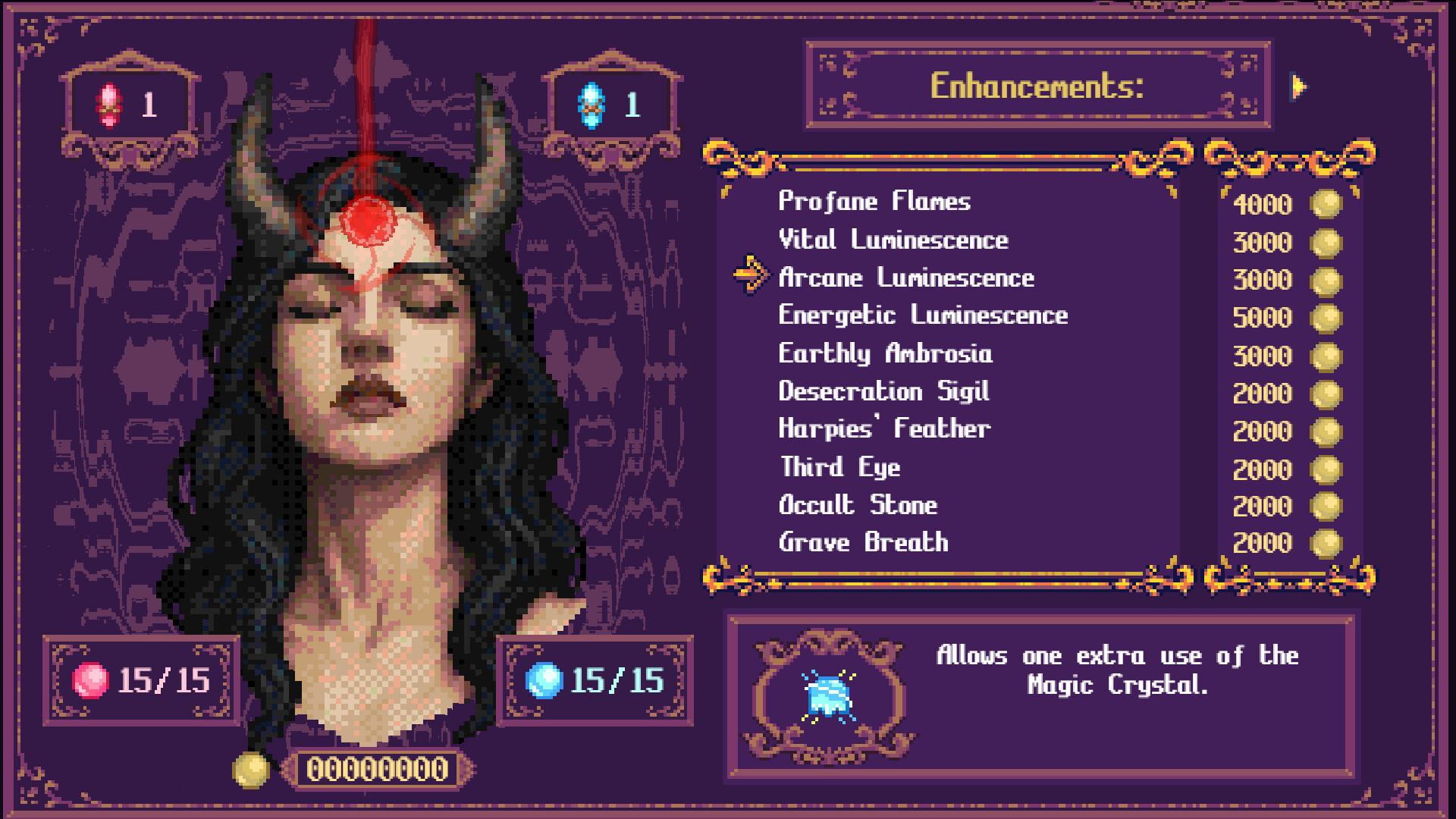 A 16‑bit dark fantasy action adventure with metroidvania‑style maps, RPG growth, and hidden secrets. Lead the Nightfall Empress through a mature journey suspended between the sacred and the profane.