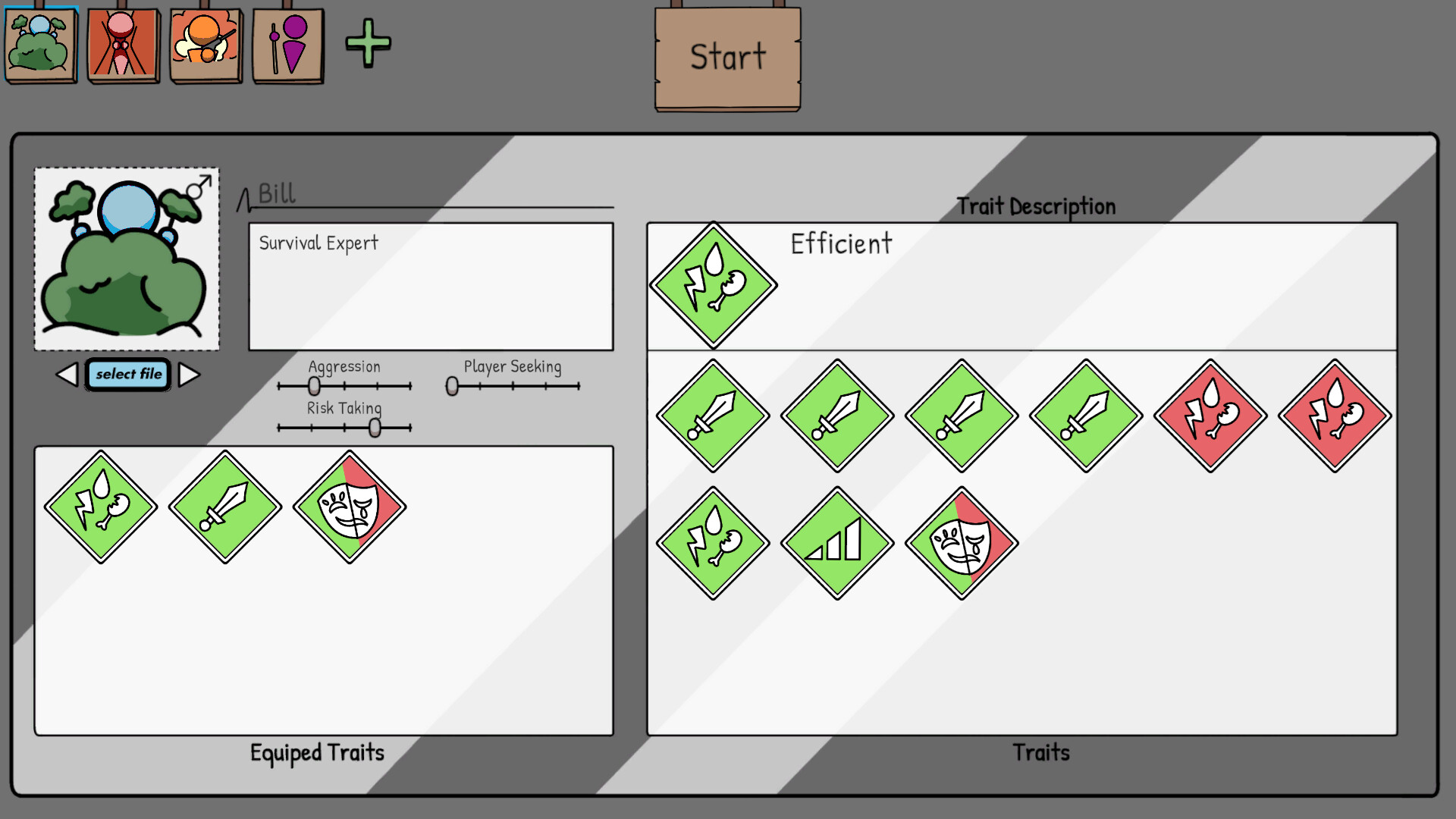 Tell your own stories in Total Survival Simulator and watch the simulation play out in real time. Create characters, set relationships, traits and make them survive in a fight to the death with up to 16 other contestants.