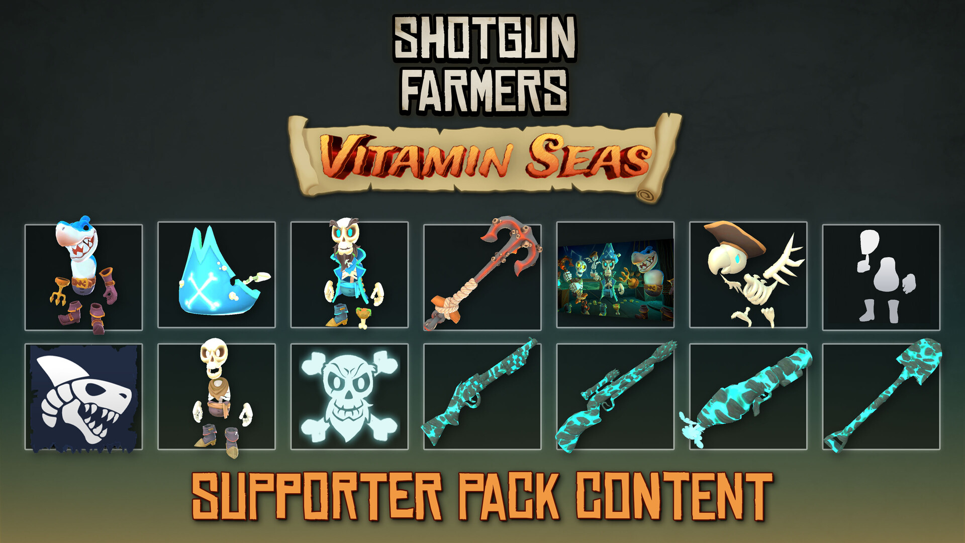 Apoie Shotgun Farmers e embarque em uma aventura pirata caótica, cheia de cosméticos amaldiçoados e recompensas exclusivas!