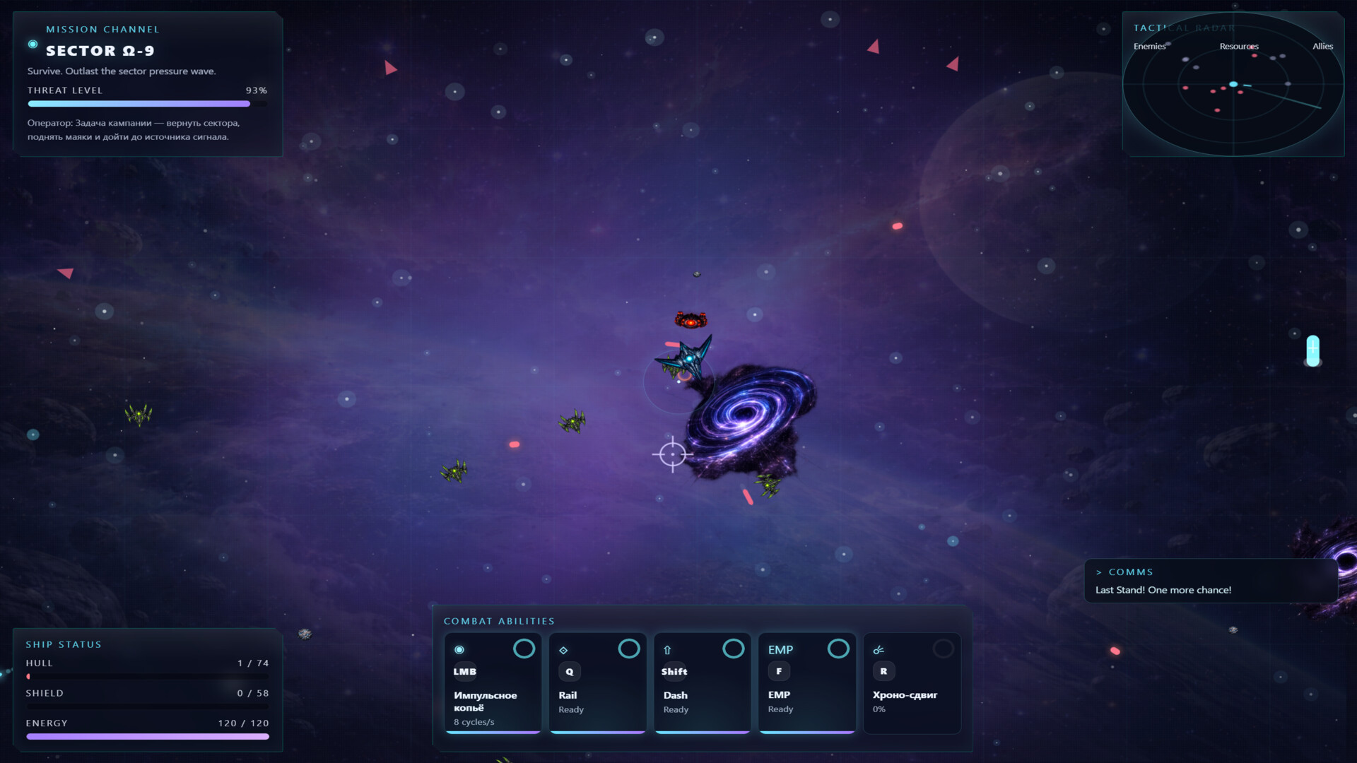 • Energy — powers your dash, railgun, EMP, and ultimate. Spent it all on dodges? Nothing left for the kill shot