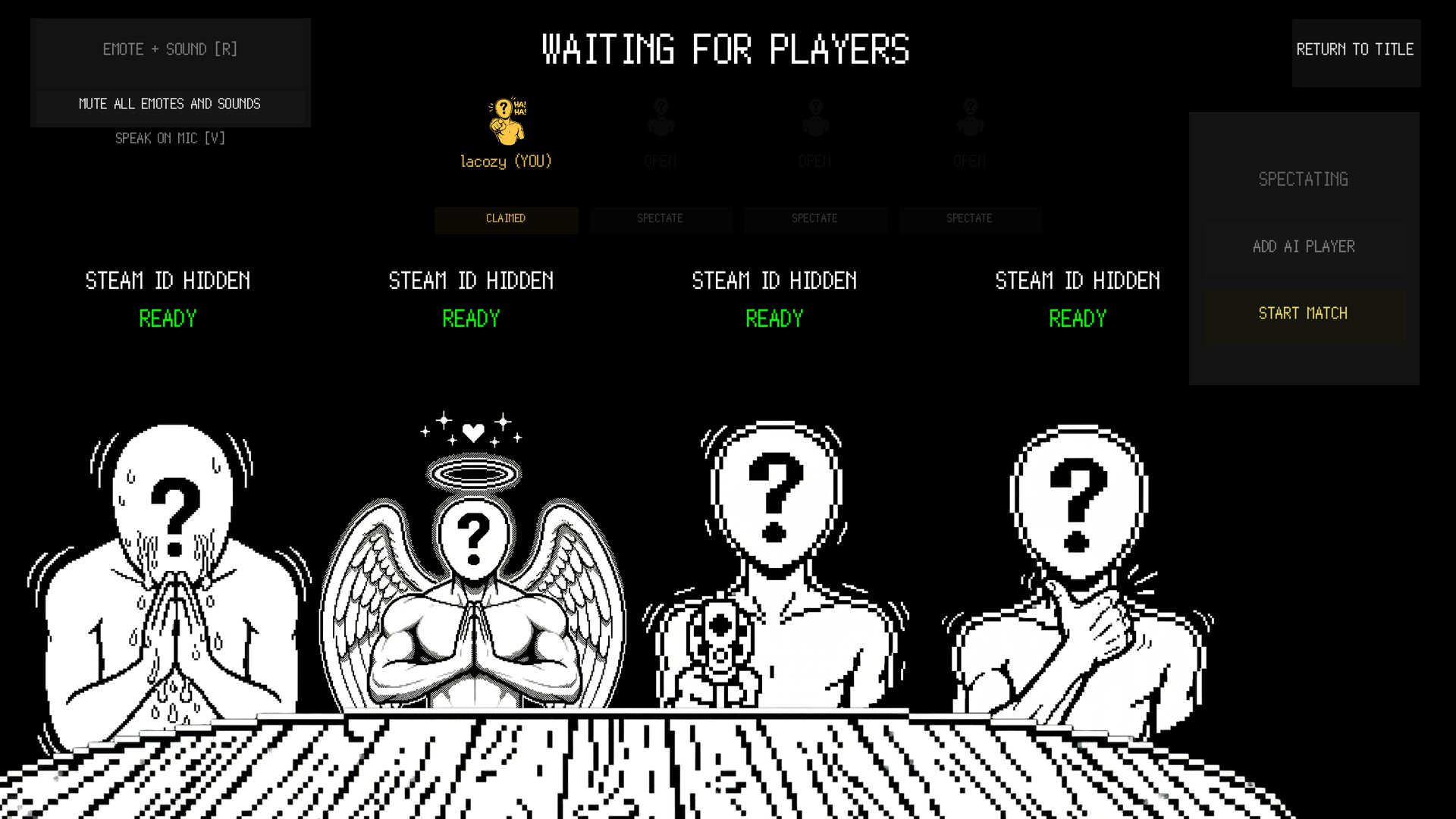 We utilize generative artificial intelligence during our development process strictly as an art-assistance tool. Unlockable player avatars, profile badges, and chat emotes were created or conceptualized using AI image generators.