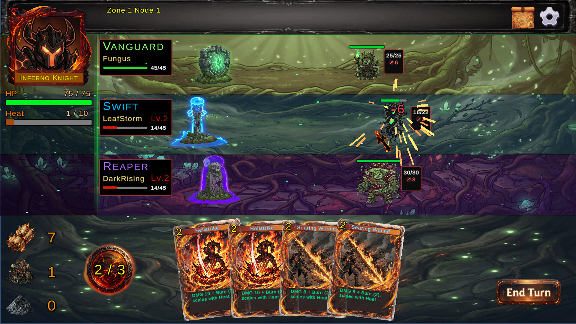 Begin your journey as the Inferno Knight — and discover the heroes that follow. Build synergies, push your lanes to the edge, and decide how much damage you're willing to take to win.