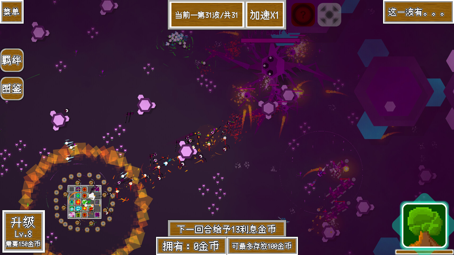 Winning stages grants Evolution Points. Use them to upgrade your troops and your Chosen One!