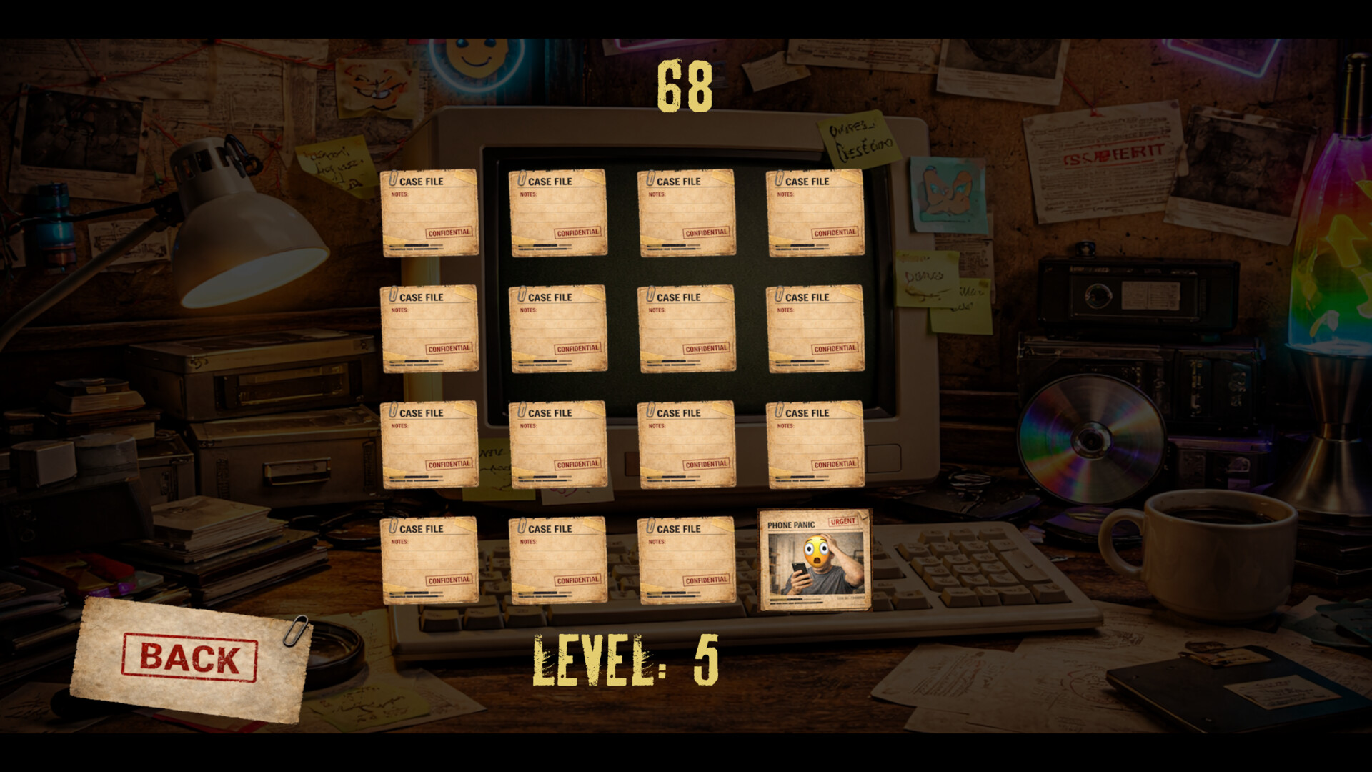 Каждый уровень — как чужое дело из пыльной картотеки. Открываешь карточки, ищешь пары, держишь в голове расположение, спешишь, пока тикает время. Ошибся — сам виноват. Замешкался — тоже. Начал открывать наугад — архив быстро объяснит, что память у тебя не такая уж феноменальная. Но именно в этом и кайф. Сначала ты просто складываешь пары. Потом начинаешь узнавать карточки с полувзгляда. Потом злишься, потому что Phone Panic только что был где-то справа сверху. Потом добиваешь уровень на три звезды и сразу жмешь следующий, потому что вон там уже маячит новый файл, новый мем, новая нелепость, которую срочно надо добавить в коллекцию.