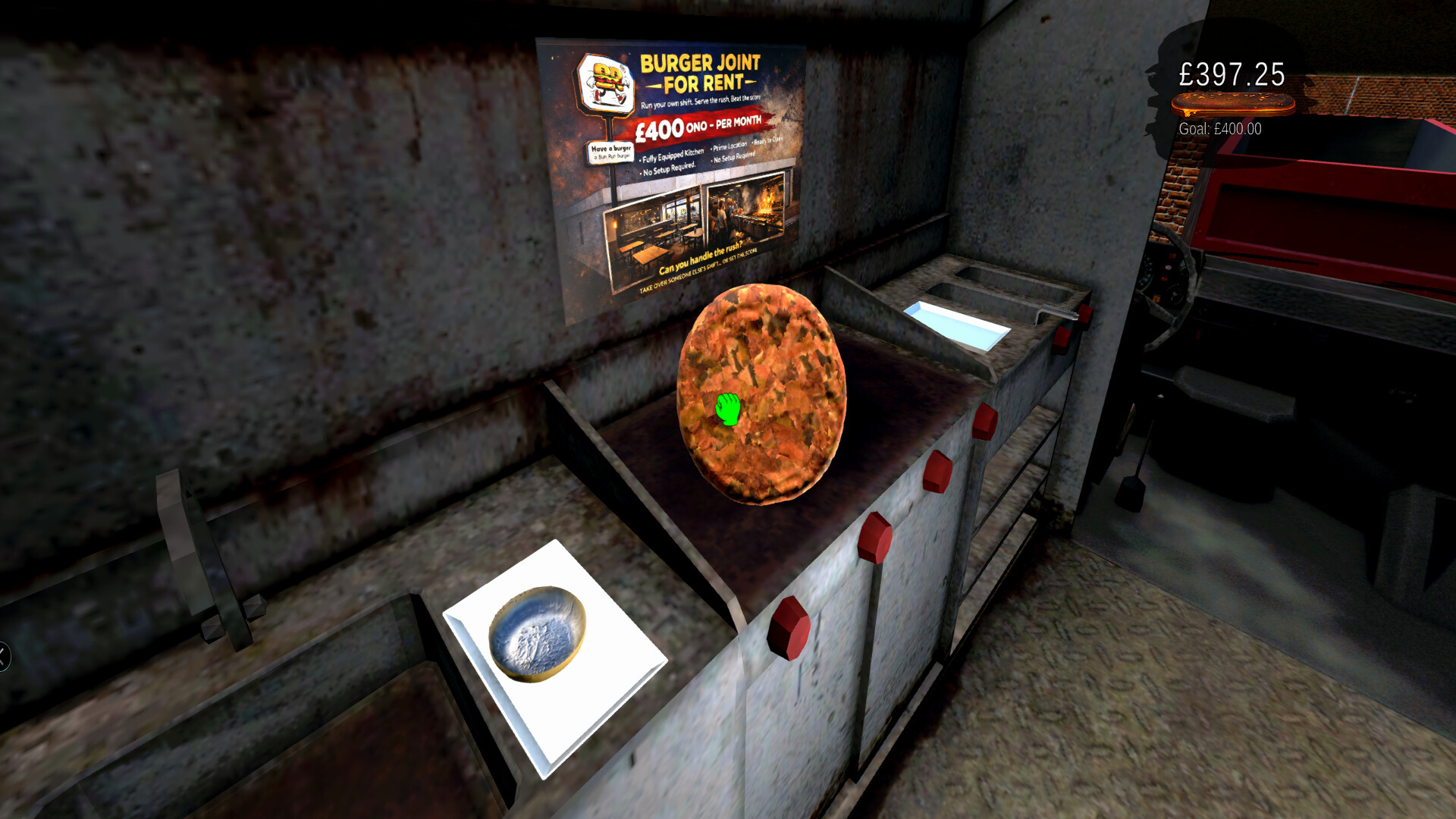 Take orders, cook patties, and stack burgers by hand in a fully physical, first-person system.