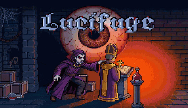 Lucifuge features stylized pixel-art depictions of fantasy violence and horror themes. Players will engage in combat with supernatural entities, including skeletons and monstrous creatures. The game includes visual representations of blood during combat encounters and within the environment to enhance the gothic atmosphere. There is no depiction of realistic gore, sexual violence, or drug use.