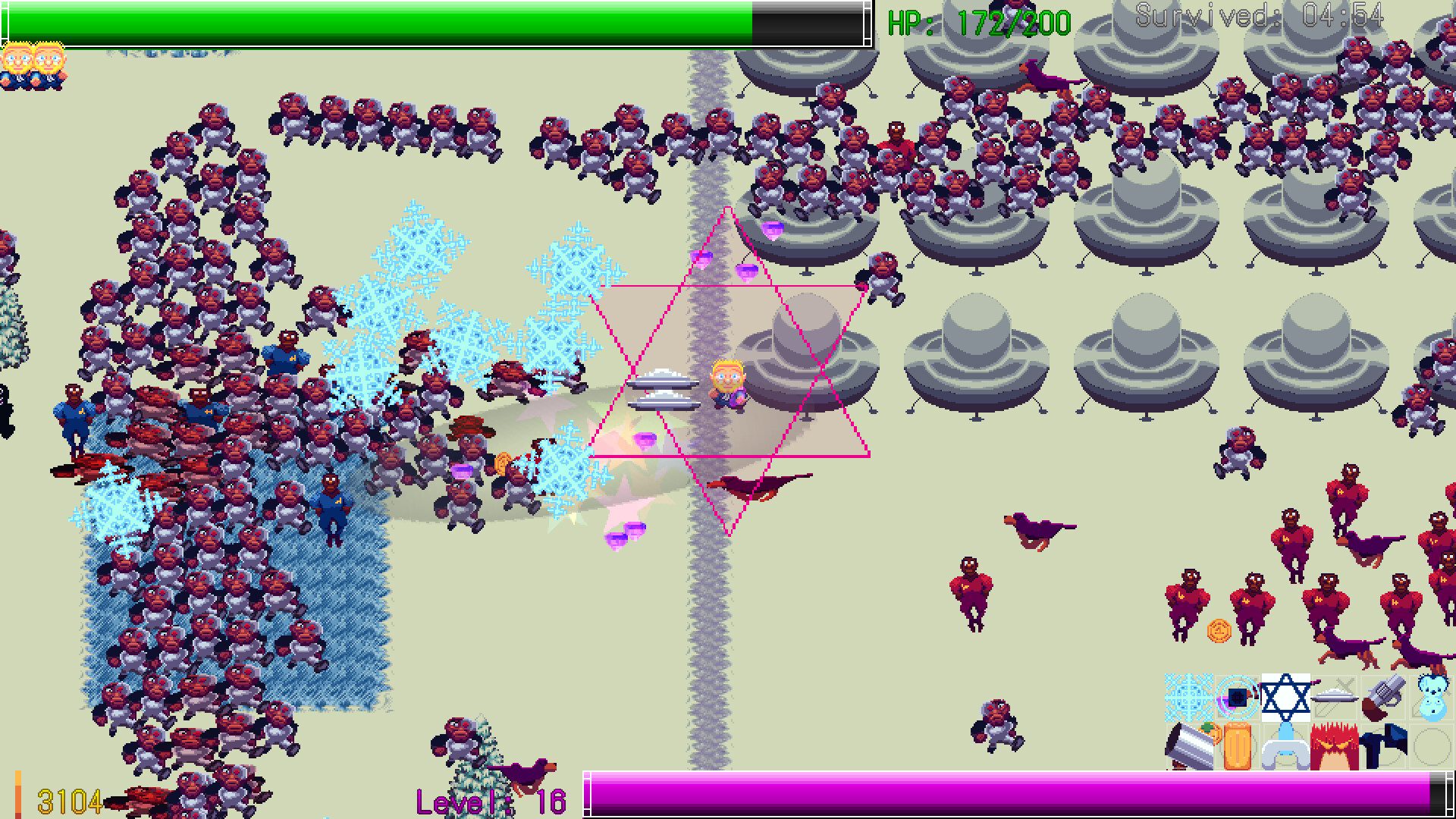 Agartha Survivors is a bullet-heaven roguelite set in the mythical underground world of Agartha. Fight off relentless waves of cybernetic soldiers from the surface of the earth while leveling up a growing arsenal of zesty weapons and passive abilities. How long can you survive?