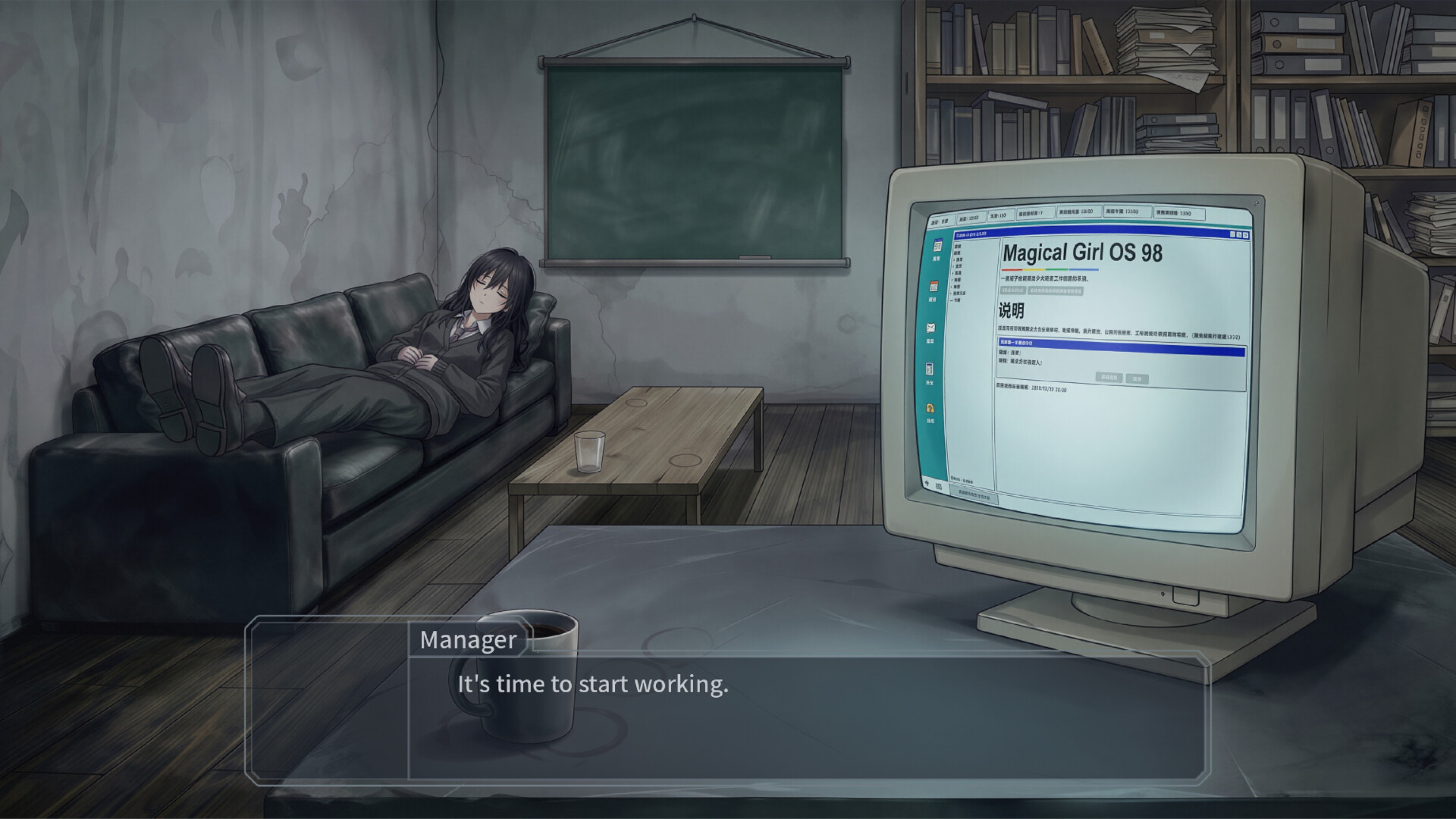 Visual novel × management sim × dating sim. As a magical girl manager, you will be taking charge of your very first magical girl—Lin Gen. Even though she smokes, drinks, runs loan-sharking schemes, and is addicted to transforming, she is a good girl—a good magical girl, right?