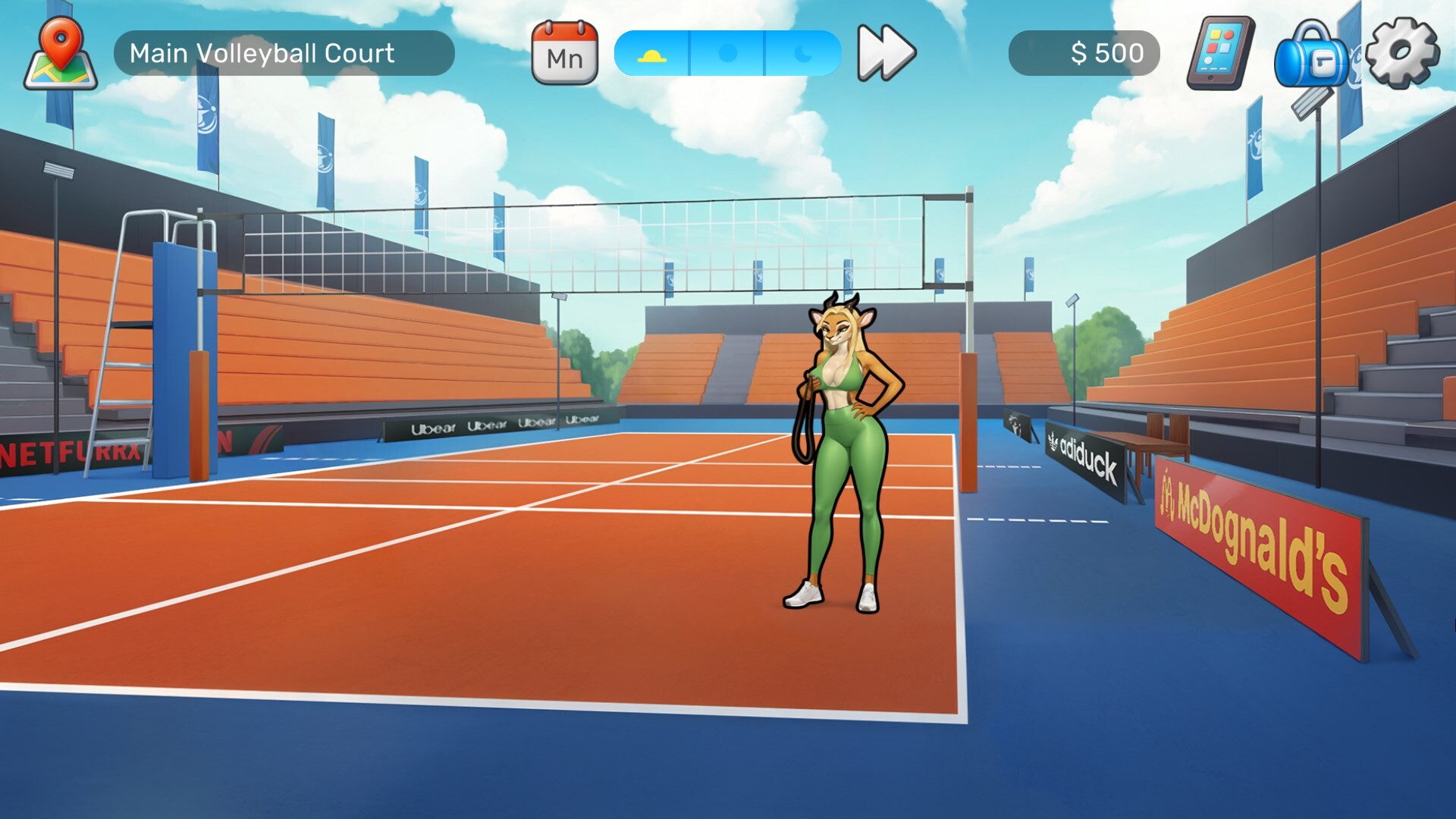 The game features developing romantic storylines with the girls, including sexual scenes. The main character, who has recently arrived in a new city to work as a coach for a women's volleyball team, goes on dates with different girls and has sex with them. The game takes place in an American California setting in a furry world