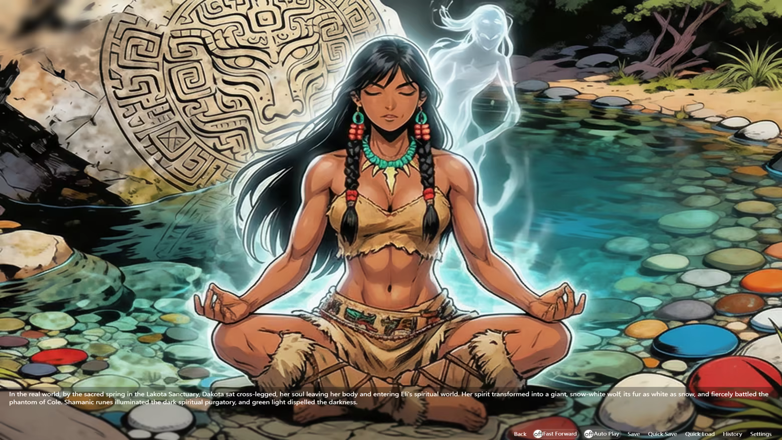 • Ancient God Sacred Site Series Scenes: A Quiet Secret Realm of Healing and Redemption: The Lakota sacred site is surrounded by thousand-year-old cedar forests, with the sacred spring gurgling, boulders covered with ancient totems, and sunlight pouring down through the pine needles to cast dappled light and shadow. The air is filled with the fragrance of cedar and herbs. The warm-toned light and shadow combined with delicate natural textures not only highlight the gentleness of shaman healing techniques, but also hide the mystery of ancient god inheritance. It forms a strong contrast with the desert battlefield and becomes an emotional buffer and power upgrading place in the plot.