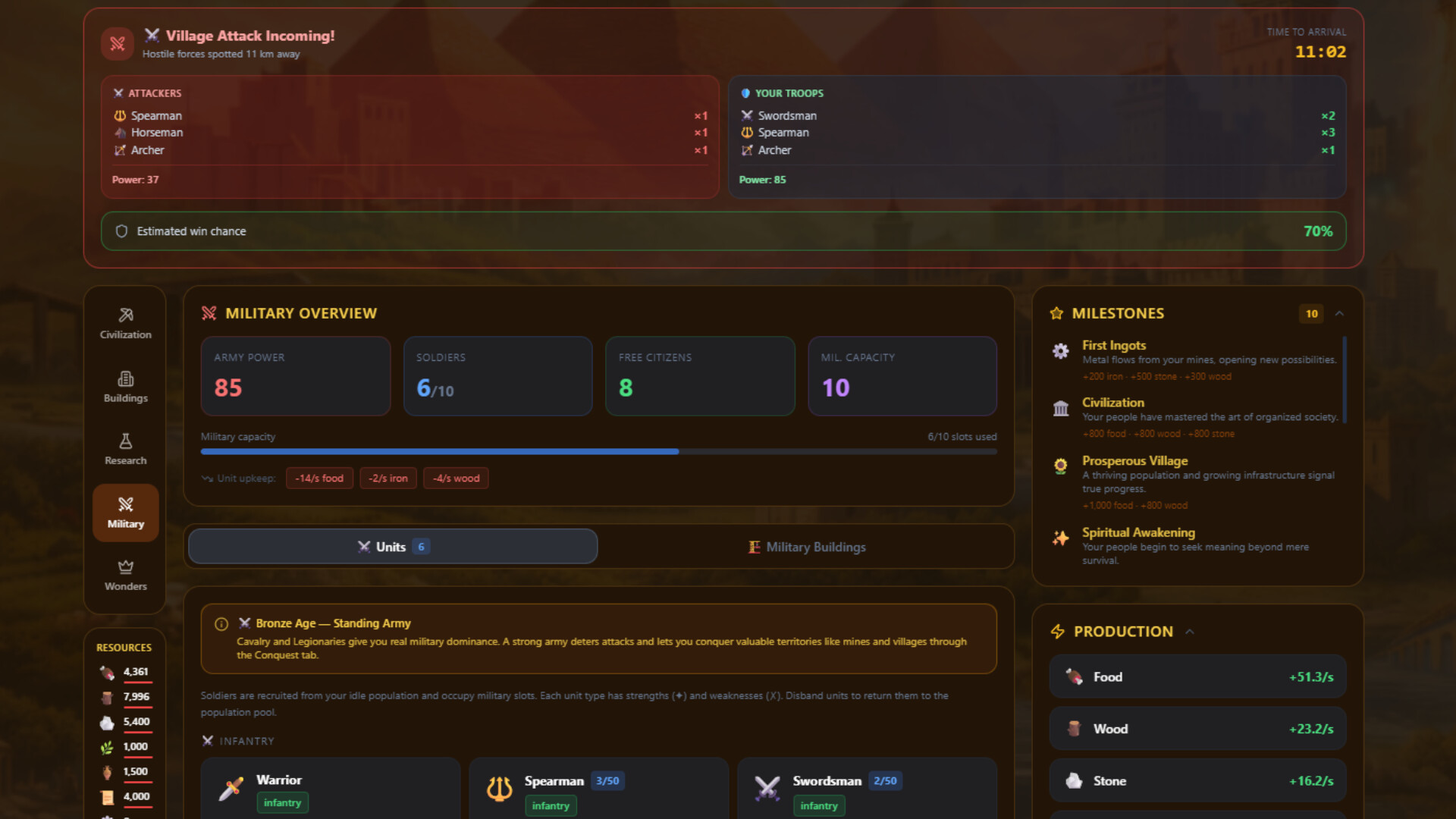 Step into a world where every decision shapes the destiny of your civilization. Start small, manage resources, and watch your empire grow from a single settlement into a sprawling civilization across 6 eras, from the Stone Age to the Galactic Era.